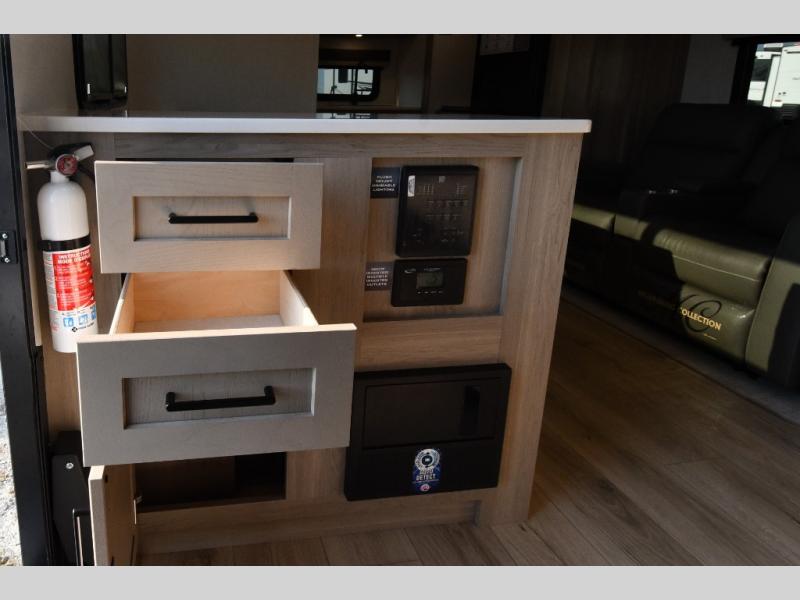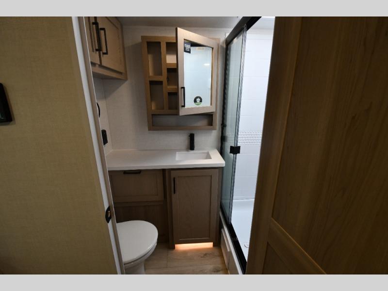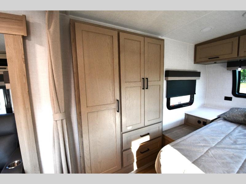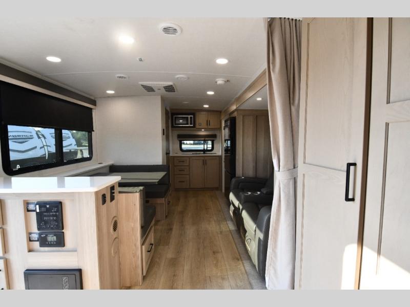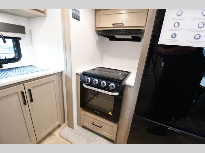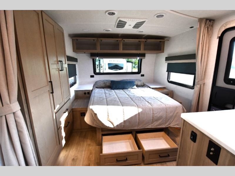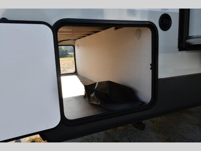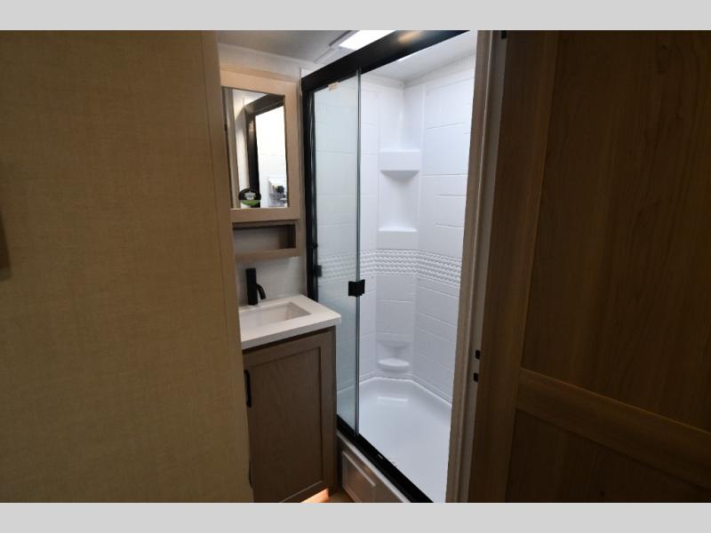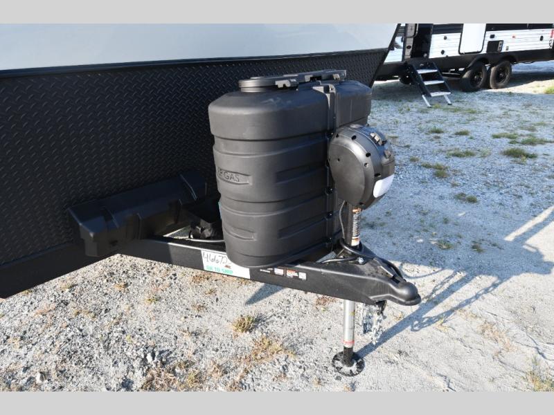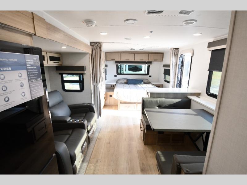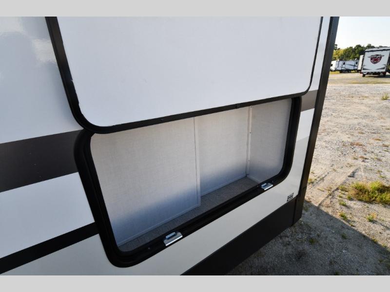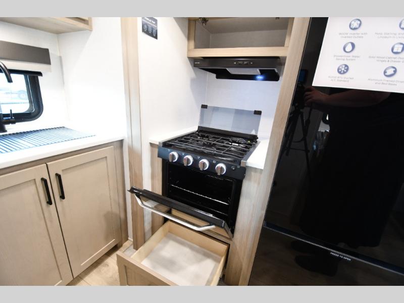 Designed for convenience and durability, the 25FBD includes RoadTech tire pressure monitoring, Dexter Torflex axles, and nitrogen-filled Goodyear Endurance tires for smooth towing. The six-sided aluminum frame, radiant foil insulation, and drop-frame pass-thru storage make this trailer both strong and functional. Additional features like frameless windows, slam baggage doors, exterior hot/cold water port, power tongue jack, and stabilizer jacks simplify every trip. Upgrades, including the Great Expectations Package, dual soft-start 13.5K A/C units, 4 power stabilizer jacks, and two slide toppers, enhance comfort and convenience for every adventure.