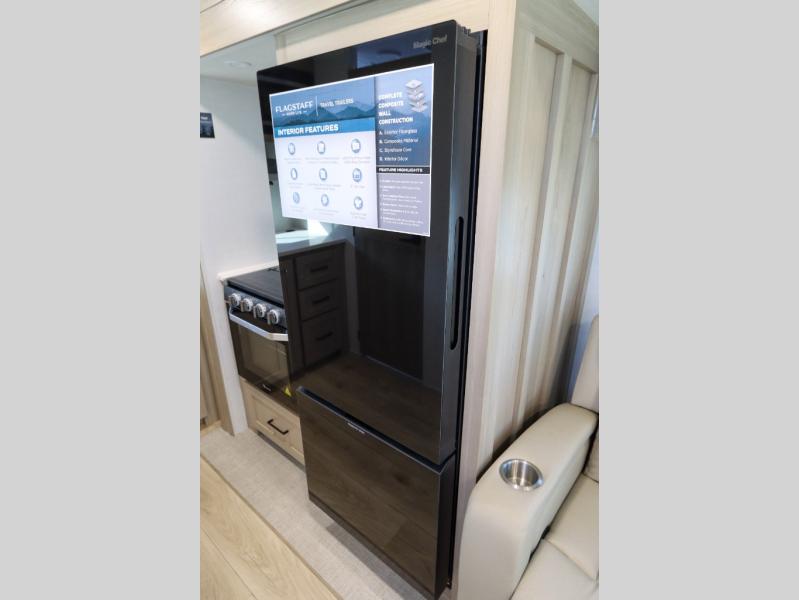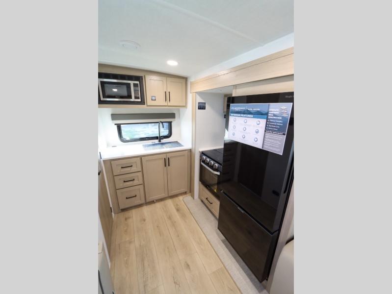 With any Flagstaff Micro Lite travel trailer by Forest River you will enjoy lightweight towing, durable construction, and added interior comforts to make each trip memorable! Each model features a torsion axle, Rubber-Ryde suspension, nitrogen filled, Goodyear Endurance tires, and easy lube axles with Nev-R-Adjust brakes for smooth towing from home to campground. The 6-sided aluminum framed construction provides a strong foundation so you can enjoy your RV for years to come, plus electronically controlled heated holding tanks and an enclosed underbelly will let you camp all year long. Head inside to find hybrid woven flooring in the slide outs, Sedona wood cabinetry, solid surface kitchen countertops, and many more amenities. These travel trailers also include exterior conveniences for hassle-free camping, like the power tongue jack, magnetic compartment door catches, Keyed Alike locks, and rear ladder to name a few!