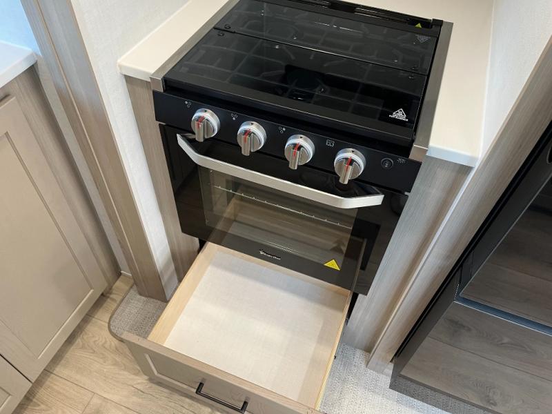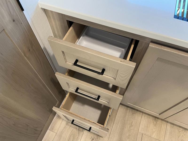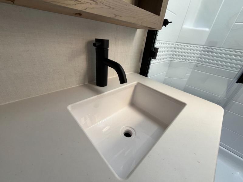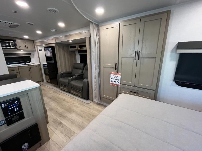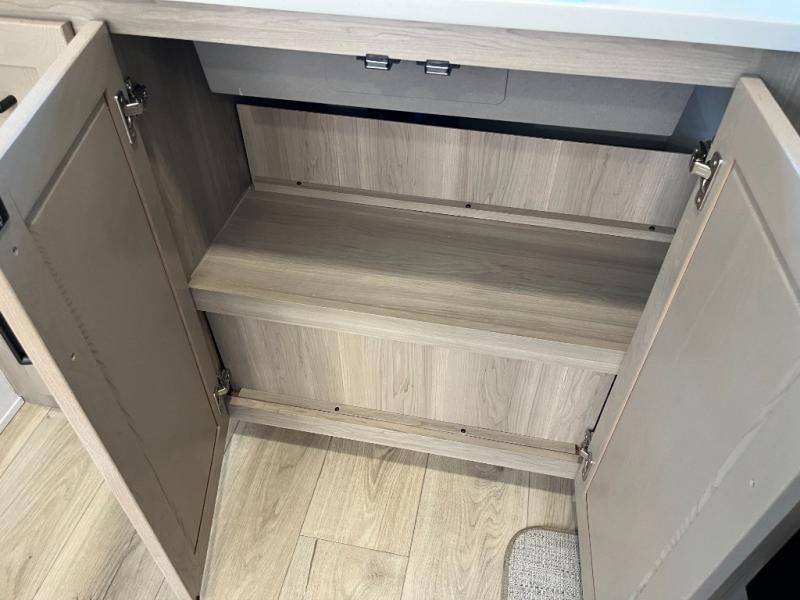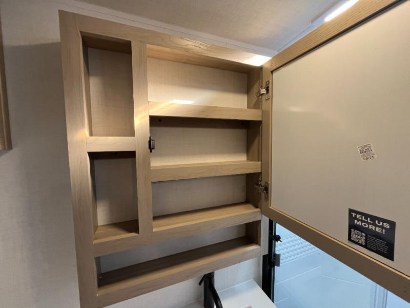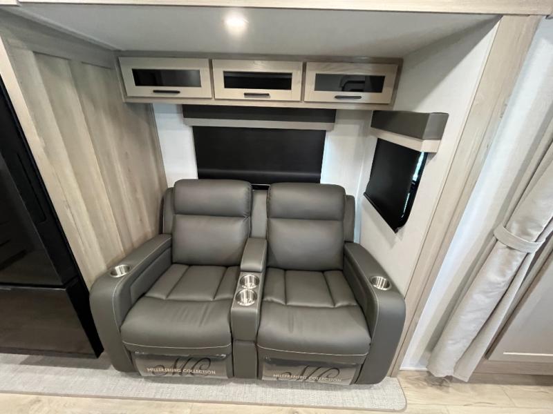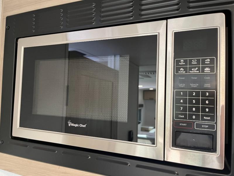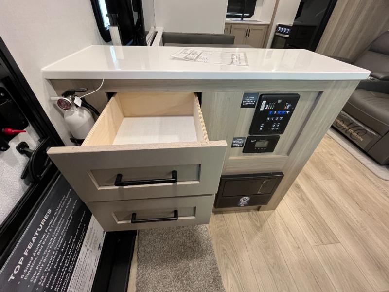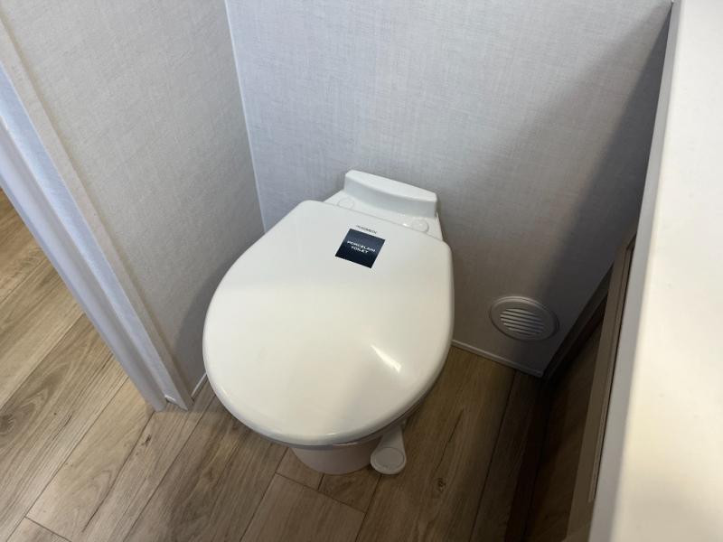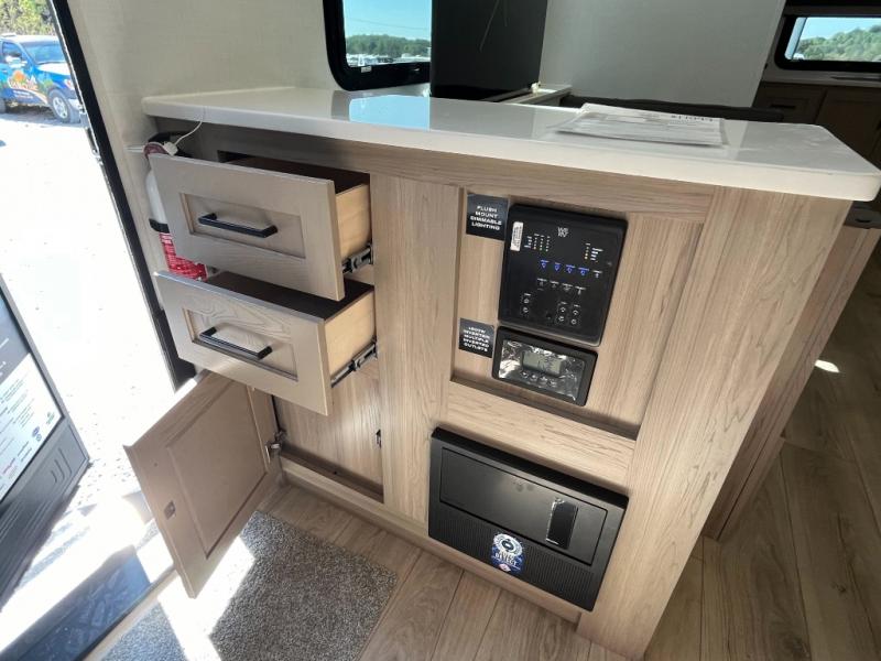 You'll be met with comfort at every turn in this spacious travel trailer. There is a large slide out which houses the theater seat, cooktop and refrigerator, plus a second slide out with a pantry/wardrobe for extra storage. You can sleep great each night on the front 60" x 74" queen bed, and there is flip-up storage underneath for extra blankets, boards games, and more. Once dinner has been made, you can dine at the booth dinette, or take your plate outdoors to relax under the 20' power awning. This unit also includes a full bath so you don't have to use the camp's facilities in the middle of the night!