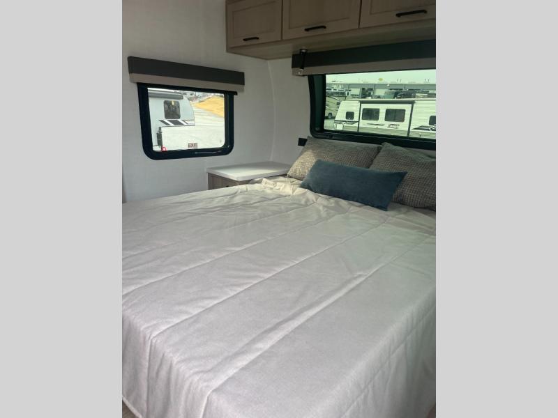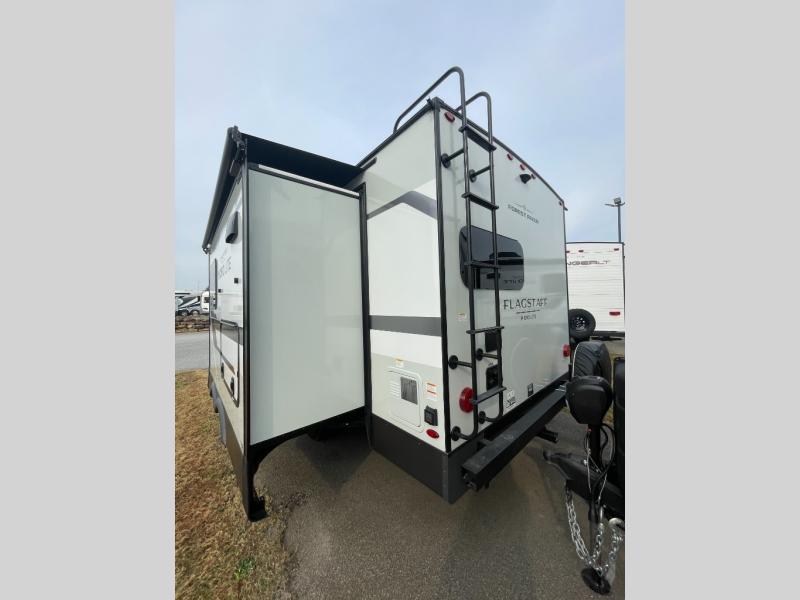 With any Flagstaff Micro Lite travel trailer by Forest River you will enjoy lightweight towing, durable construction, and added interior comforts to make each trip memorable! Each model features RoadTech tire pressure monitoring, Dexter Torflex axles, and nitrogen-filled Goodyear endurance tires for smooth towing from home to campground. The 6-sided aluminum framed construction provides a strong foundation so you can enjoy your RV for years to come, plus the radiant foil in the front cap, underbelly and slides help insulate your trailer. Additional exterior features include a 200W solar panel, back-up camera prep, frameless windows, and slam baggage doors. Each model includes the Great Expectations Package with roller shades, solid surface kitchen countertops, and hidden hinge cabinet doors. There is also an exterior hot/cold water port, outside speakers, a power tongue jack and stabilizer jacks, plus many more conveniences.