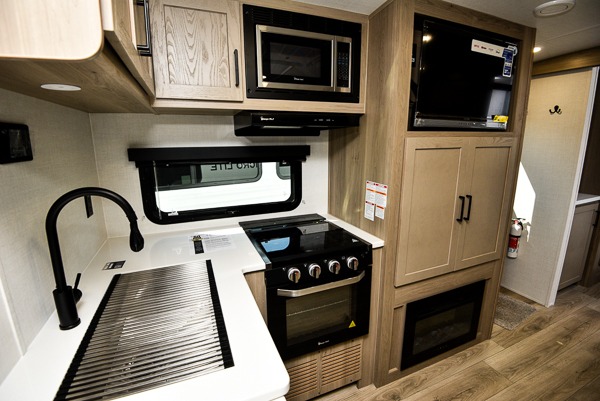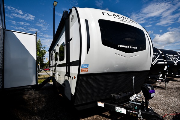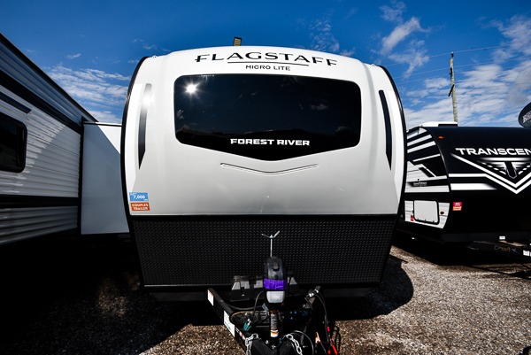 With any Flagstaff Micro Lite travel trailer by Forest River you will enjoy lightweight towing, durable construction, and added interior comforts to make each trip memorable! Each model features RoadTech tire pressure monitoring, Dexter Torflex axles, and nitrogen-filled Goodyear endurance tires for smooth towing from home to campground. The 6-sided aluminum framed construction provides a strong foundation so you can enjoy your RV for years to come, plus the radiant foil in the front cap, underbelly and slides help insulate your trailer. Additional exterior features include a 200W solar panel, back-up camera prep, frameless windows, and slam baggage doors. Each model includes the Great Expectations Package with roller shades, solid surface kitchen countertops, and hidden hinge cabinet doors. There is also an exterior hot/cold water port, outside speakers, a power tongue jack and stabilizer jacks, plus many more conveniences.