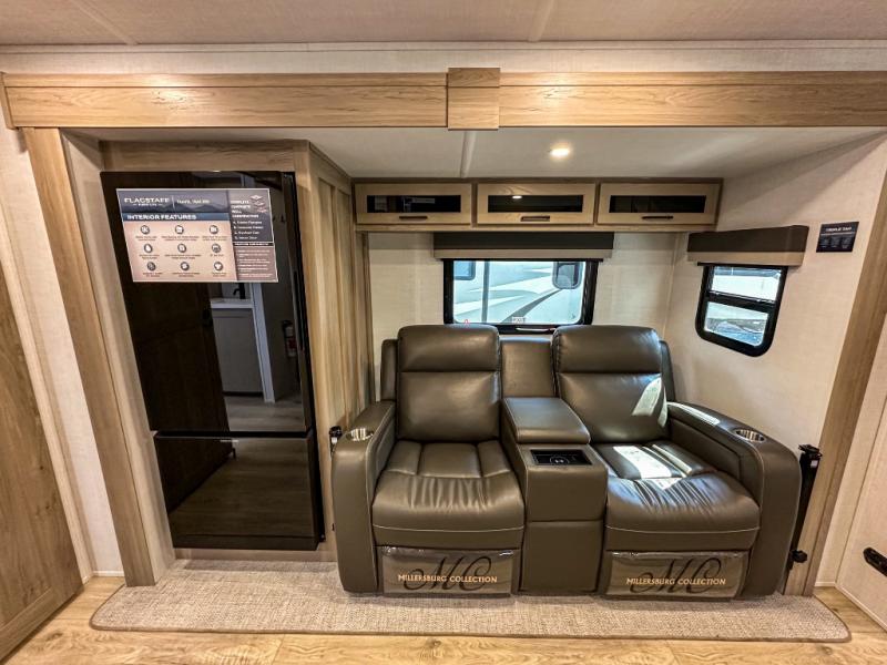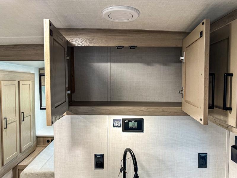 For the couple who enjoys a weekend camping trip, come choose this Flagstaff Micro Lite travel trailer. This unit features a slide that holds the theater seats with tables where you can dine each day, or you can choose the optional booth dinette or optional hide-a-bed sofa if you need more sleeping space. You'll love relaxing on these in the evening while you enjoy your entertainment center with a 12V Smart entertainment TV. The private front bedroom includes an RV queen bed and a wardrobe slide. You'll love the cute kitchen with extra counter space for meal prep and a large closet/pantry to hold your favorite snacks.