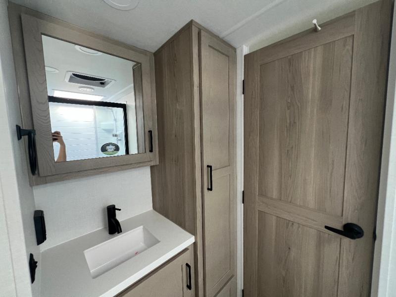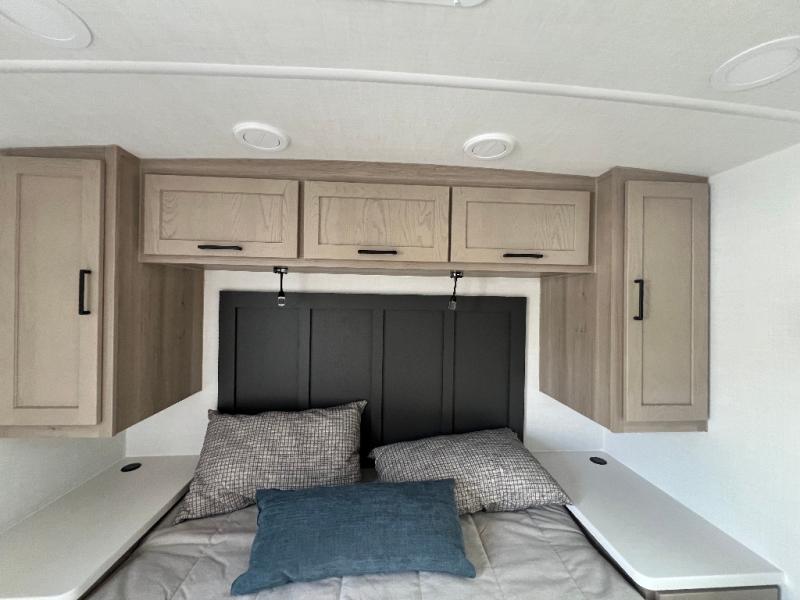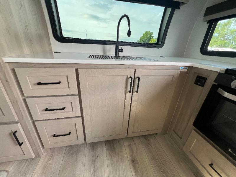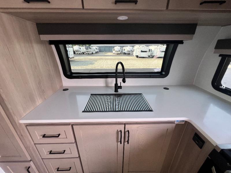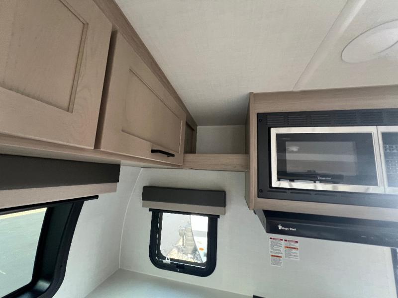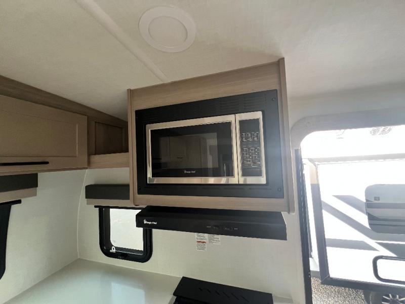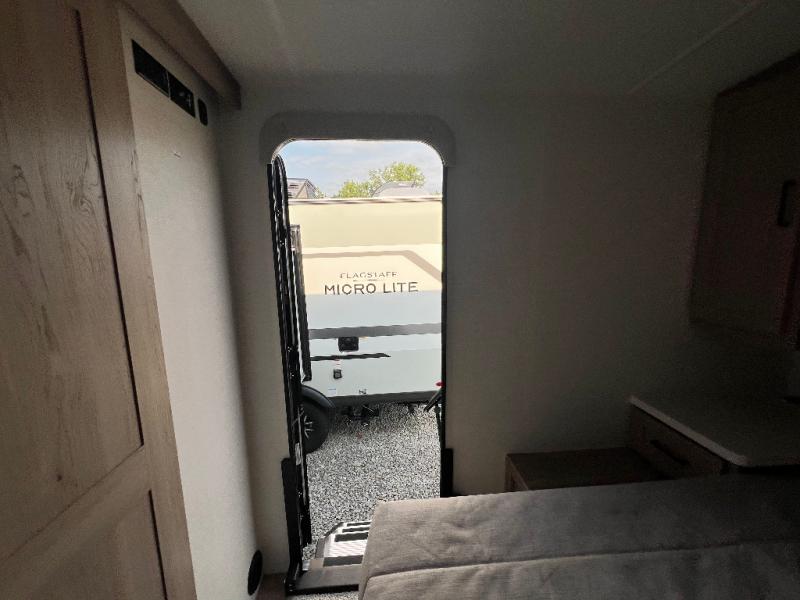 With any Flagstaff Micro Lite travel trailer by Forest River you will enjoy lightweight towing, durable construction, and added interior comforts to make each trip memorable! Each model features RoadTech tire pressure monitoring, Dexter Torflex axles, and nitrogen-filled Goodyear endurance tires for smooth towing from home to campground. The 6-sided aluminum framed construction provides a strong foundation so you can enjoy your RV for years to come, plus the radiant foil in the front cap, underbelly and slides help insulate your trailer. Additional exterior features include a 200W solar panel, back-up camera prep, frameless windows, and slam baggage doors. Each model includes the Great Expectations Package with roller shades, solid surface kitchen countertops, and hidden hinge cabinet doors. There is also an exterior hot/cold water port, outside speakers, a power tongue jack and stabilizer jacks, plus many more conveniences.