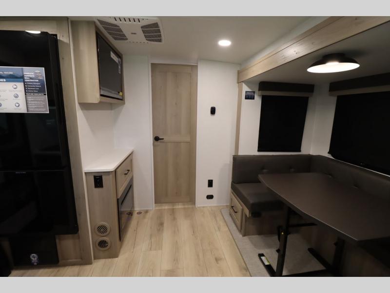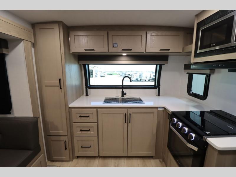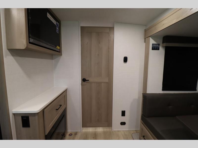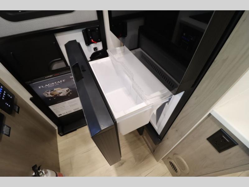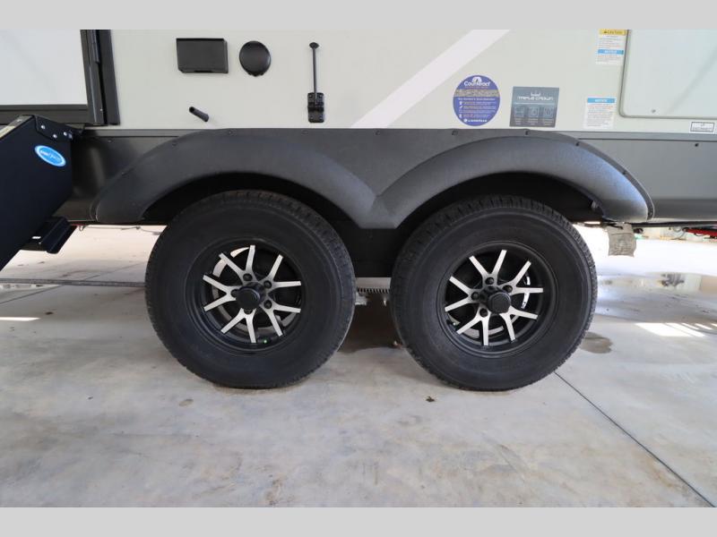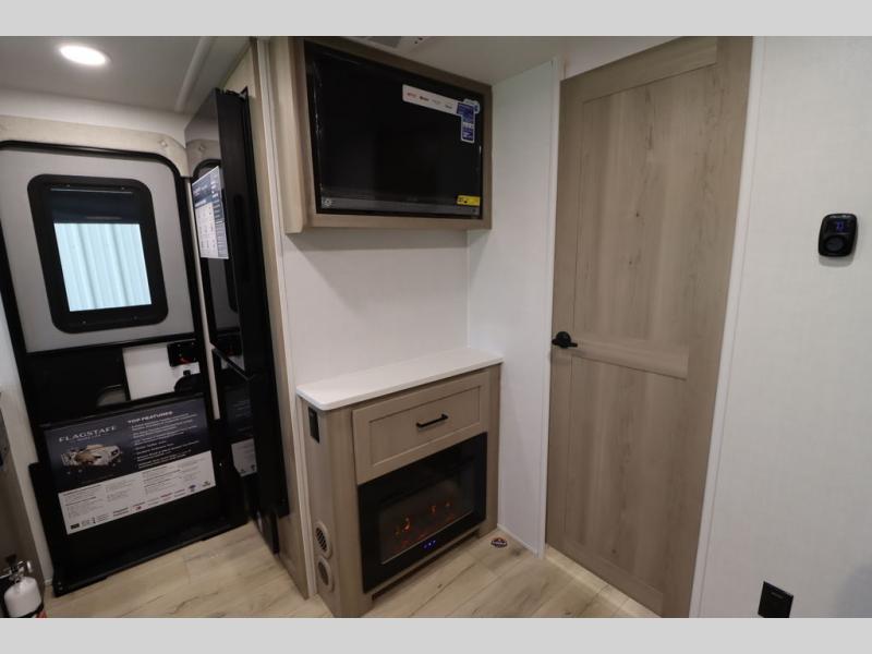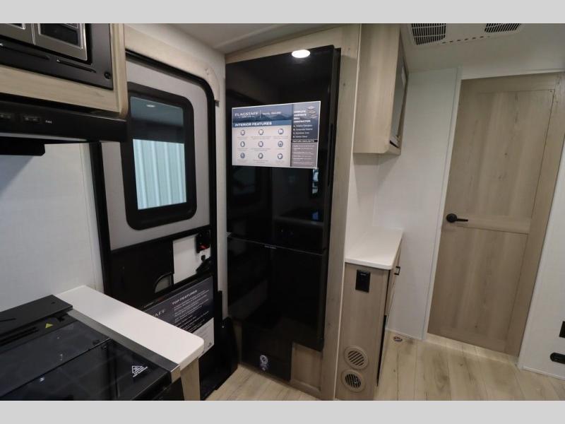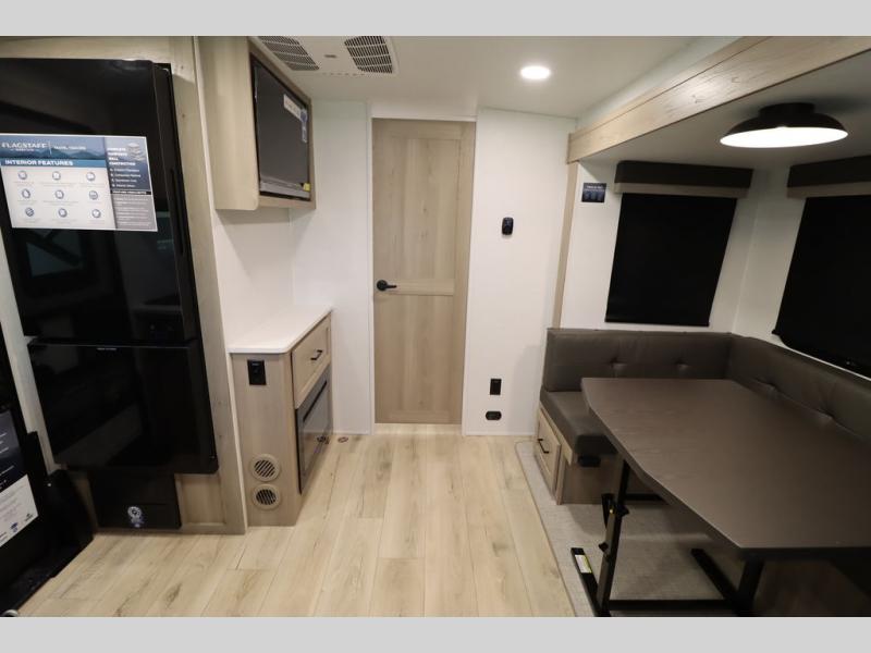 With any Flagstaff Micro Lite travel trailer by Forest River you will enjoy lightweight towing, durable construction, and added interior comforts to make each trip memorable! Each model features RoadTech tire pressure monitoring, Dexter Torflex axles, and nitrogen-filled Goodyear endurance tires for smooth towing from home to campground. The 6-sided aluminum framed construction provides a strong foundation so you can enjoy your RV for years to come, plus the radiant foil in the front cap, underbelly and slides help insulate your trailer. Additional exterior features include a 200W solar panel, back-up camera prep, frameless windows, and slam baggage doors. Each model includes the Great Expectations Package with roller shades, solid surface kitchen countertops, and hidden hinge cabinet doors. There is also an exterior hot/cold water port, outside speakers, a power tongue jack and stabilizer jacks, plus many more conveniences.