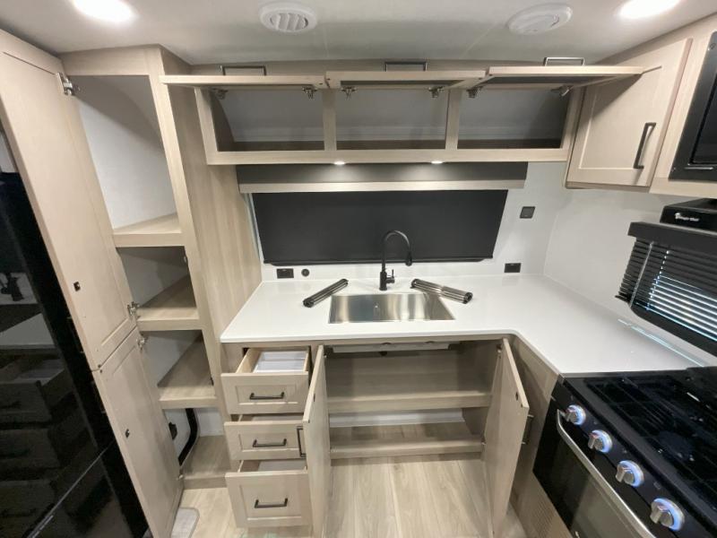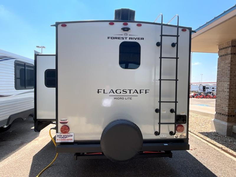 With any Flagstaff Micro Lite travel trailer by Forest River you will enjoy lightweight towing, durable construction, and added interior comforts to make each trip memorable! Each model features RoadTech tire pressure monitoring, Dexter Torflex axles, and nitrogen-filled Goodyear endurance tires for smooth towing from home to campground. The 6-sided aluminum framed construction provides a strong foundation so you can enjoy your RV for years to come, plus the radiant foil in the front cap, underbelly and slides help insulate your trailer. Additional exterior features include a 200W solar panel, back-up camera prep, frameless windows, and slam baggage doors. Each model includes the Great Expectations Package with roller shades, solid surface kitchen countertops, and hidden hinge cabinet doors. There is also an exterior hot/cold water port, outside speakers, a power tongue jack and stabilizer jacks, plus many more conveniences.