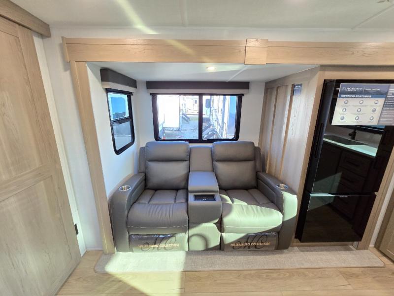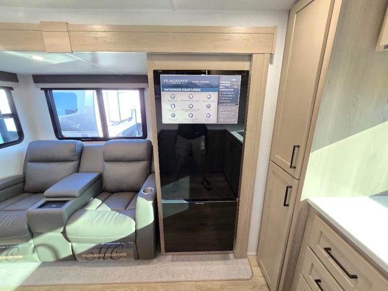 With any Flagstaff Micro Lite travel trailer by Forest River you will enjoy lightweight towing, durable construction, and added interior comforts to make each trip memorable! Each model features RoadTech tire pressure monitoring, Dexter Torflex axles, and nitrogen-filled Goodyear endurance tires for smooth towing from home to campground. The 6-sided aluminum framed construction provides a strong foundation so you can enjoy your RV for years to come, plus the radiant foil in the front cap, underbelly and slides help insulate your trailer. Additional exterior features include a 200W solar panel, back-up camera prep, frameless windows, and slam baggage doors. Each model includes the Great Expectations Package with roller shades, solid surface kitchen countertops, and hidden hinge cabinet doors. There is also an exterior hot/cold water port, outside speakers, a power tongue jack and stabilizer jacks, plus many more conveniences.