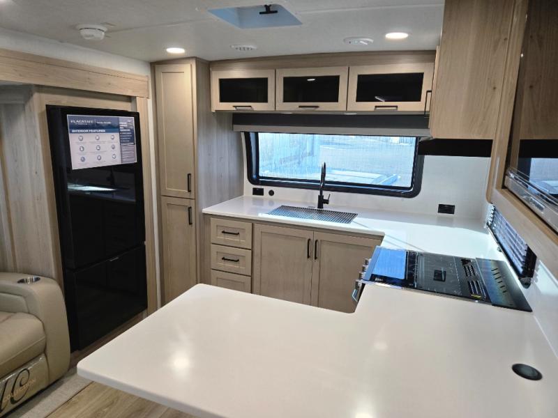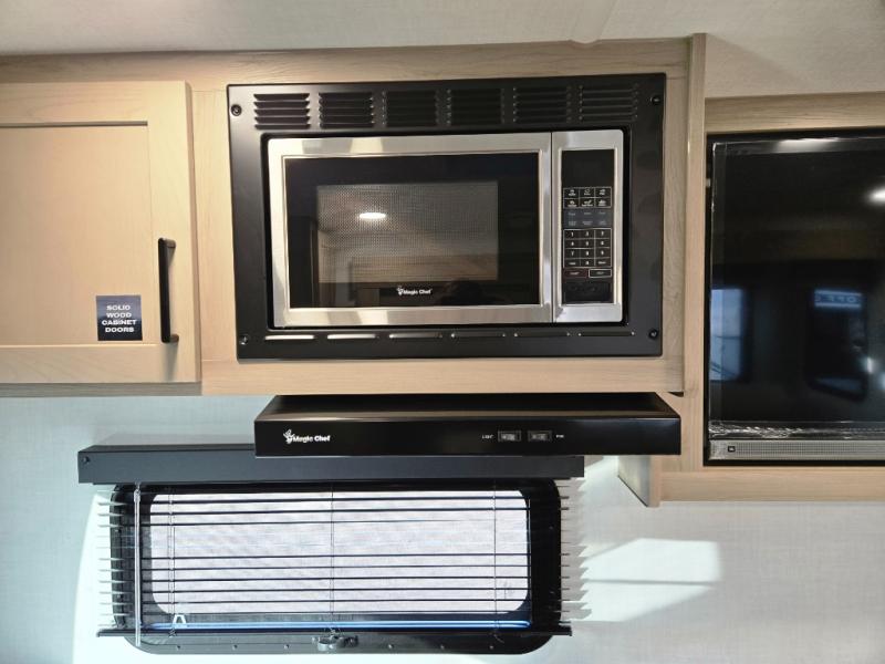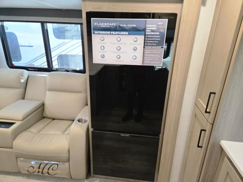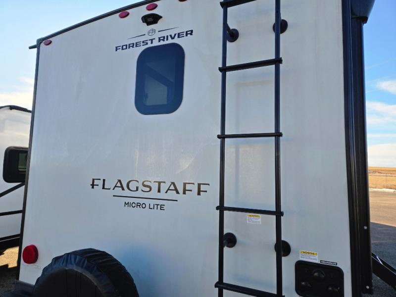 With any Flagstaff Micro Lite travel trailer by Forest River you will enjoy lightweight towing, durable construction, and added interior comforts to make each trip memorable! Each model features RoadTech tire pressure monitoring, Dexter Torflex axles, and nitrogen-filled Goodyear endurance tires for smooth towing from home to campground. The 6-sided aluminum framed construction provides a strong foundation so you can enjoy your RV for years to come, plus the radiant foil in the front cap, underbelly and slides help insulate your trailer. Additional exterior features include a 200W solar panel, back-up camera prep, frameless windows, and slam baggage doors. Each model includes the Great Expectations Package with roller shades, solid surface kitchen countertops, and hidden hinge cabinet doors. There is also an exterior hot/cold water port, outside speakers, a power tongue jack and stabilizer jacks, plus many more conveniences.