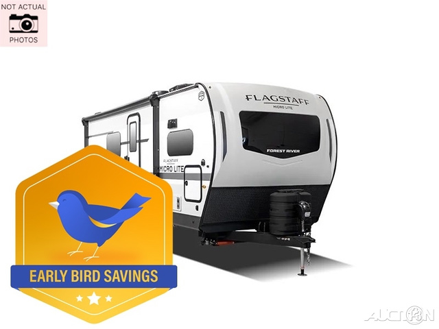 With any Flagstaff Micro Lite travel trailer by Forest River you will enjoy lightweight towing, durable construction, and added interior comforts to make each trip memorable! Each model features RoadTech tire pressure monitoring, Dexter Torflex axles, and nitrogen-filled Goodyear endurance tires for smooth towing from home to campground. The 6-sided aluminum framed construction provides a strong foundation so you can enjoy your RV for years to come, plus the radiant foil in the front cap, underbelly and slides help insulate your trailer. Additional exterior features include a 200W solar panel, back-up camera prep, frameless windows, and slam baggage doors. Each model includes the Great Expectations Package with roller shades, solid surface kitchen countertops, and hidden hinge cabinet doors. There is also an exterior hot/cold water port, outside speakers, a power tongue jack and stabilizer jacks, plus many more conveniences.