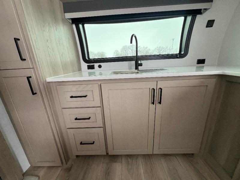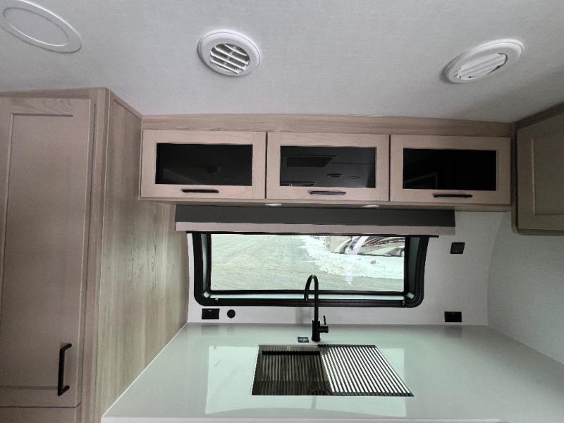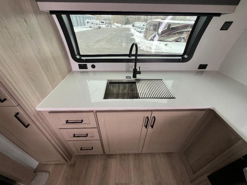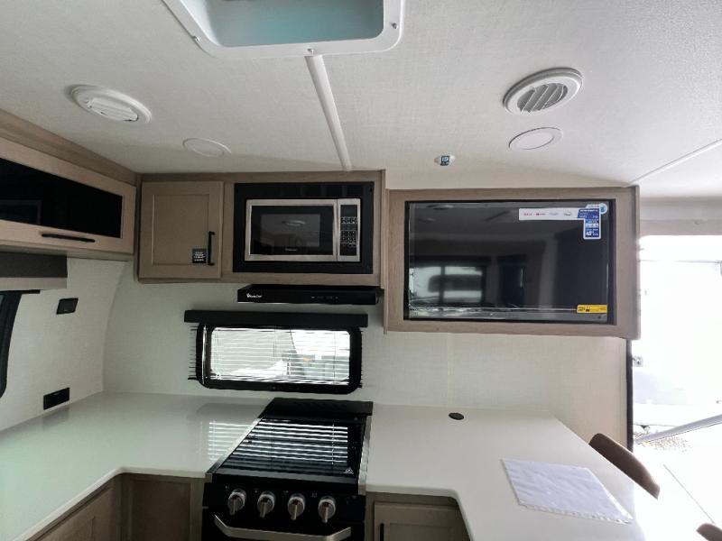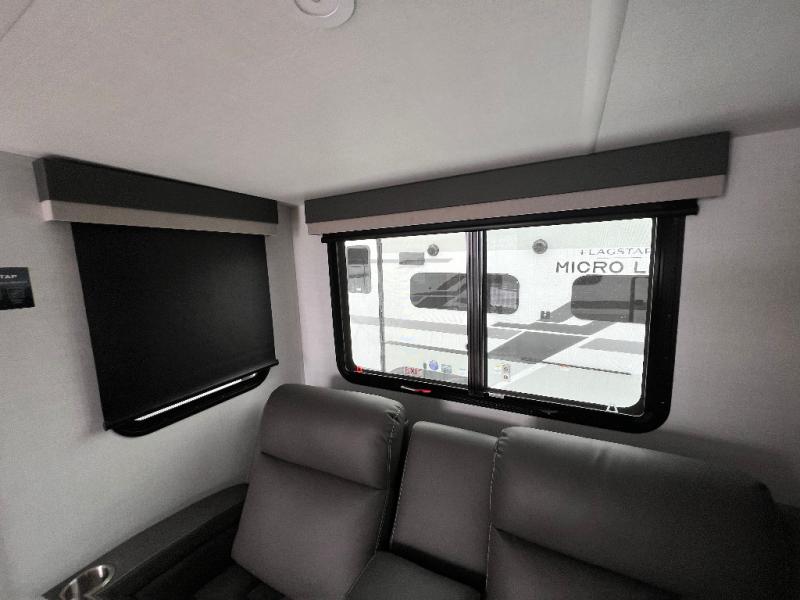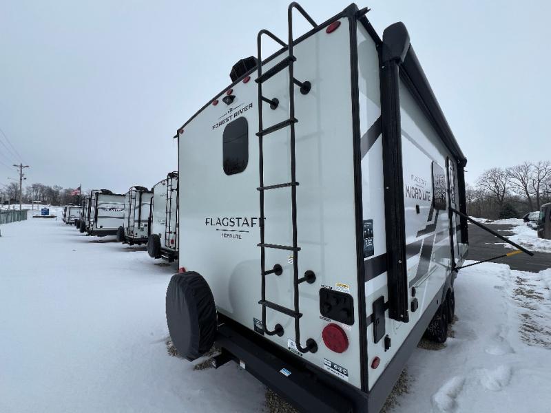 With any Flagstaff Micro Lite travel trailer by Forest River you will enjoy lightweight towing, durable construction, and added interior comforts to make each trip memorable! Each model features RoadTech tire pressure monitoring, Dexter Torflex axles, and nitrogen-filled Goodyear endurance tires for smooth towing from home to campground. The 6-sided aluminum framed construction provides a strong foundation so you can enjoy your RV for years to come, plus the radiant foil in the front cap, underbelly and slides help insulate your trailer. Additional exterior features include a 200W solar panel, back-up camera prep, frameless windows, and slam baggage doors. Each model includes the Great Expectations Package with roller shades, solid surface kitchen countertops, and hidden hinge cabinet doors. There is also an exterior hot/cold water port, outside speakers, a power tongue jack and stabilizer jacks, plus many more conveniences.