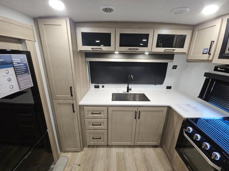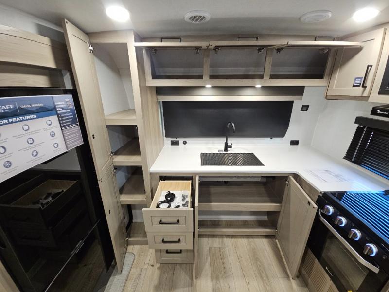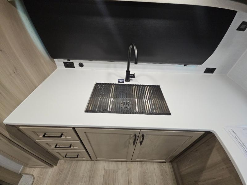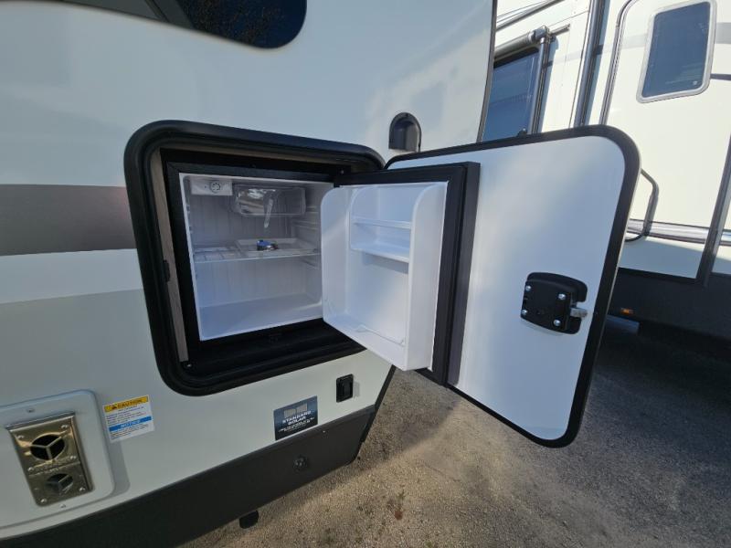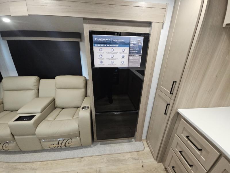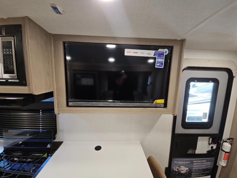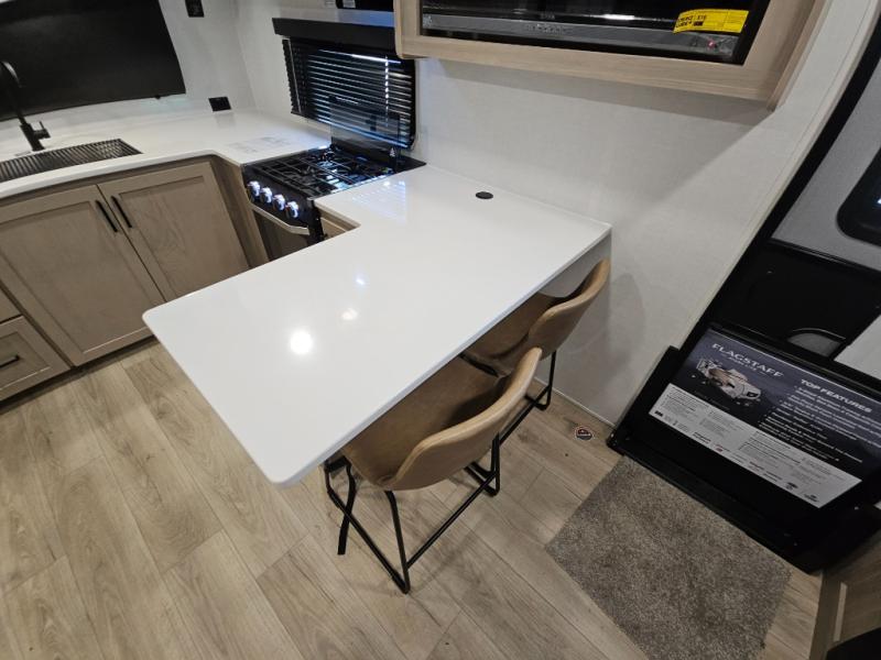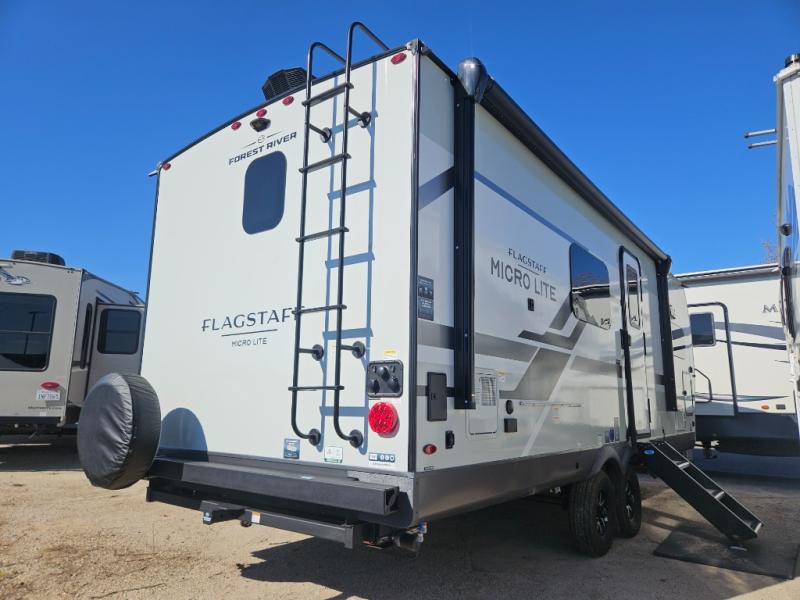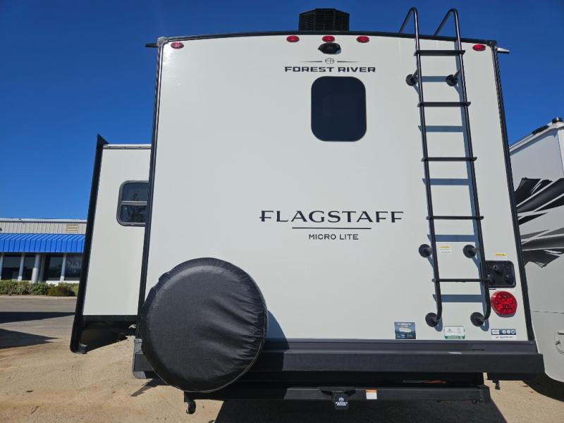 With any Flagstaff Micro Lite travel trailer by Forest River you will enjoy lightweight towing, durable construction, and added interior comforts to make each trip memorable! Each model features RoadTech tire pressure monitoring, Dexter Torflex axles, and nitrogen-filled Goodyear endurance tires for smooth towing from home to campground. The 6-sided aluminum framed construction provides a strong foundation so you can enjoy your RV for years to come, plus the radiant foil in the front cap, underbelly and slides help insulate your trailer. Additional exterior features include a 200W solar panel, back-up camera prep, frameless windows, and slam baggage doors. Each model includes the Great Expectations Package with roller shades, solid surface kitchen countertops, and hidden hinge cabinet doors. There is also an exterior hot/cold water port, outside speakers, a power tongue jack and stabilizer jacks, plus many more conveniences.