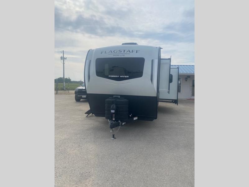 With any Flagstaff Micro Lite travel trailer by Forest River you will enjoy lightweight towing, durable construction, and added interior comforts to make each trip memorable! Each model features RoadTech tire pressure monitoring, Dexter Torflex axles, and nitrogen-filled Goodyear endurance tires for smooth towing from home to campground. The 6-sided aluminum framed construction provides a strong foundation so you can enjoy your RV for years to come, plus the radiant foil in the front cap, underbelly and slides help insulate your trailer. Additional exterior features include a 200W solar panel, back-up camera prep, frameless windows, and slam baggage doors. Each model includes the Great Expectations Package with roller shades, solid surface kitchen countertops, and hidden hinge cabinet doors. There is also an exterior hot/cold water port, outside speakers, a power tongue jack and stabilizer jacks, plus many more conveniences.
