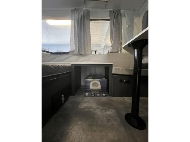 This simple, but comfortable camper is sure to meet your needs while you explore the outdoors. There are two rear stabilizer jacks with sand pads that will provide more balance and stability at the campground. Once you've cleaned up using the camp's shower, you can make your dinner on the campfire, then head indoors to dine at the 33" x 80" booth dinette. When you're ready for some shut-eye, the 60" x 80" queen-size bed is sure to bring a great night's rest!