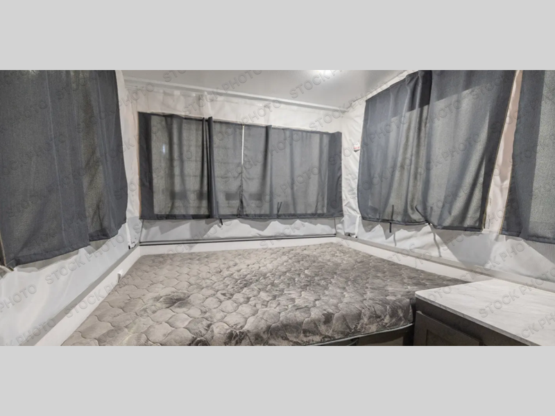With any Flagstaff OTG (Off The Ground) folding pop-up camper by Forest River, you will enjoy a more simple approach to outdoor fun. If you're a regular tent camper, but are looking for a little more comfort, then take a look at these easy-to-tow models! There are electric brakes, balancing bead filled tires, and leaf spring axles that provide that easy towing, and the alloy fiberglass exterior is sure to be eye-catching. A one-piece screen door also comes standard so you can let fresh air in, while keeping bugs out, and the LED interior lights will be an added benefit you didn't have while tent camping. Each model also includes residential style cabinet doors, wood look flooring, and an Andover Sable wood interior for a more outdoorsy feel!