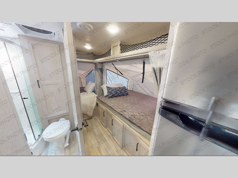 If you're looking for more sleeping space and added interior space, your search is over! This expandable includes three queen tent end beds, plus a U-shaped dinette and a flip sofa to sleep nine! A three burner cooktop and microwave oven in the kitchen will allow you to prepare meals each day, and there is an added exterior griddle for dinner outside. This model also includes an impressive amount of storage, including a kitchen pantry and exterior storage for hiking gear and tackle boxes!