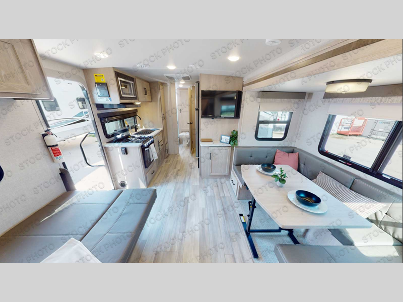 Each Flagstaff Shamrock expandable by Forest River is constructed with Azdel composite panels, radiant foil insulated underbelly and slide out floors, plus aircraft-grade cable supports for the bed ends. You will love the value you get out of these trailers, and each one is easy to tow thanks to the 6-sided full aluminum frame. Some of the convenient exterior features include an outside shower with hot and cold water, outside speakers, a power tongue jack, plus a Teton All In One WiFi booster/LTE prep and antenna for all your connection needs. You are sure to feel right at home with residential features throughout, such as solid wood cabinet doors, Newport Ash cabinetry, and seamless kitchen countertops. Try your luck with a Flagstaff Shamrock expandable today!
