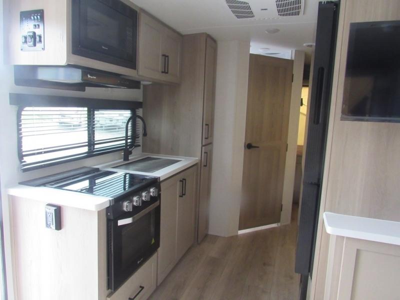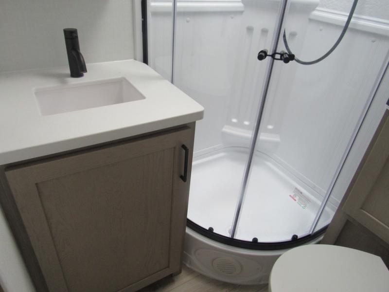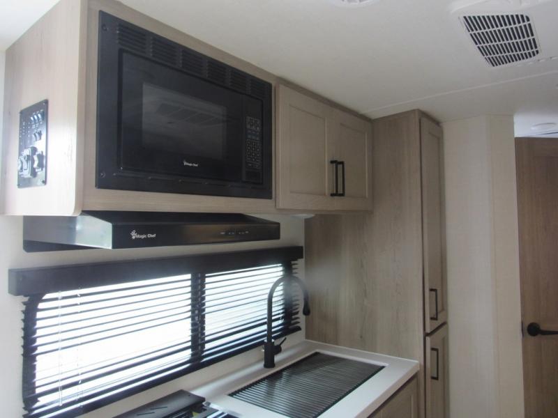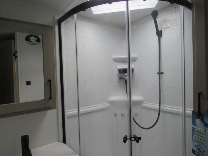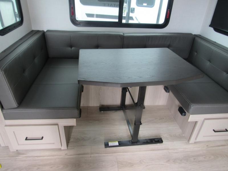 Each Flagstaff Shamrock expandable by Forest River includes an enclosed underbelly, interior and exterior composite sidewall construction, and a vinyl/rubber composite roofing membrane for added durability. The power tongue jack will make hitching up easier than ever, and the torsion axle, Rubber-Ryde suspension and Goodyear Endurance tires will provide smooth towing. You will also appreciate having a 200W roof solar panel with a 1800W inverter, an outside spray port, Keyed-Alike locks, plus many more exterior conveniences. The interior is made to feel more like home with solid wood cabinet doors and drawers, marine grade carpet in the slides, Sedona Wood cabinetry, plus seamless kitchen countertops.