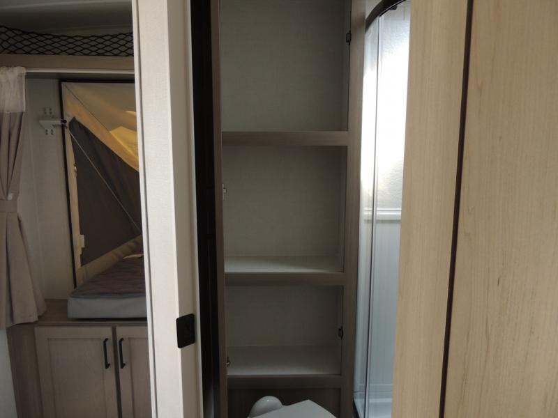 Each Flagstaff Shamrock expandable by Forest River includes an enclosed underbelly, interior and exterior composite sidewall construction, and a vinyl/rubber composite roofing membrane for added durability. The power tongue jack will make hitching up easier than ever, and the torsion axle, Rubber-Ryde suspension and Goodyear Endurance tires will provide smooth towing. You will also appreciate having a 200W roof solar panel with a 1800W inverter, an outside spray port, Keyed-Alike locks, plus many more exterior conveniences. The interior is made to feel more like home with solid wood cabinet doors and drawers, marine grade carpet in the slides, Sedona Wood cabinetry, plus seamless kitchen countertops.
