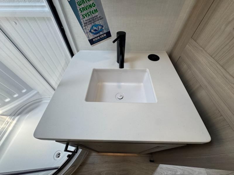 With any Flagstaff Super Lite travel trailer by Forest River the towing features include the TST tire pressure monitor system with a monitor providing safety on the road, Easy Lube axles and Nev-R adjust brakes, a power tongue jack for easy setup, and rear observation camera prep. Each is built with 6 sided aluminum framed side walls, end wall, front, floor and a roof, a plywood tongue and groove subfloor, electronically controlled heated holding tanks and an enclosed underbelly allowing you to travel during any season. The interior includes designer kitchen backsplash, solid surface kitchen countertops, Sedonwood cabinetry, and solid wood cabinet doors and drawers to make you feel right at home.