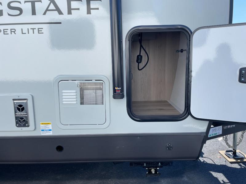 With any Flagstaff Super Lite travel trailer by Forest River, you can enjoy quality features with lightweight towing! The Climate Protection Package includes radiant foil in the front cap, underbelly, and slides, plus there are 12V thermostat-controlled heated tanks for added protection. The complete composite wall construction and 6-sided full-aluminum frame is ultra durable, and the RoadTech tire pressure monitoring adds safety. Each model also includes the Coast to Coast Package that comes with slam latch baggage doors, a high gloss fiberglass cap, Goodyear Endurance tires, plus a 200W solar panel with an optional additional 200W panel for more off grid capabilities. Inside, you'll love the roller shades, solid surface kitchen countertops, a shower miser system, and many more comforts!