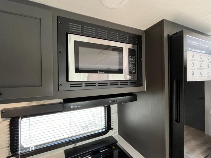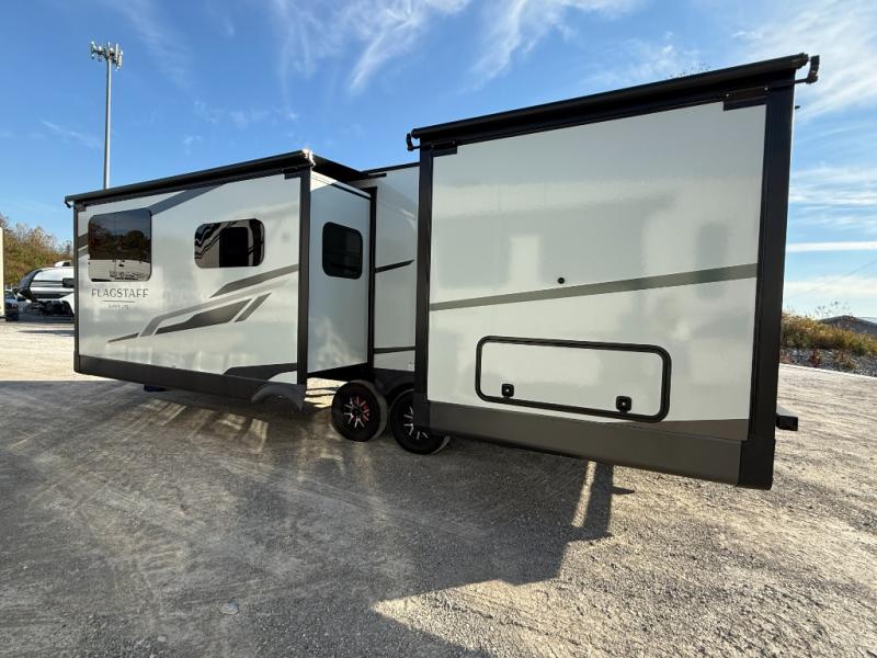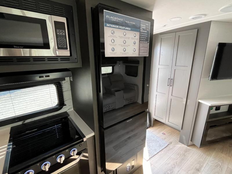With any Flagstaff Super Lite travel trailer by Forest River, you can enjoy quality features with lightweight towing! The Climate Protection Package includes radiant foil in the front cap, underbelly, and slides, plus there are 12V thermostat-controlled heated tanks for added protection. The complete composite wall construction and 6-sided full-aluminum frame is ultra durable, and the RoadTech tire pressure monitoring adds safety. Each model also includes the Coast to Coast Package that comes with slam latch baggage doors, a high gloss fiberglass cap, Goodyear Endurance tires, plus a 200W solar panel with an optional additional 200W panel for more off grid capabilities. Inside, you'll love the roller shades, solid surface kitchen countertops, a shower miser system, and many more comforts!