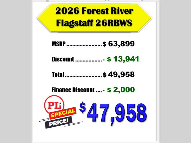 New 2026 Forest River RV Flagstaff Super Lite 26RBWS Travel Trailer