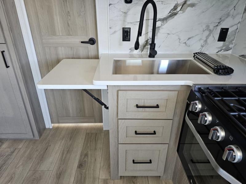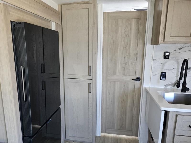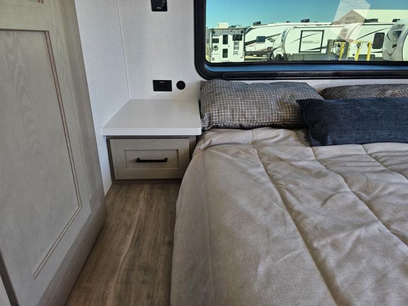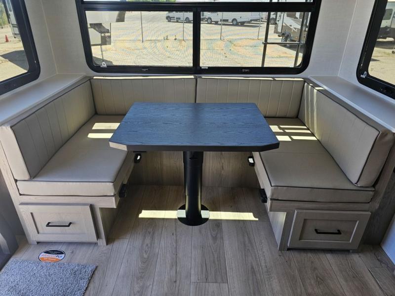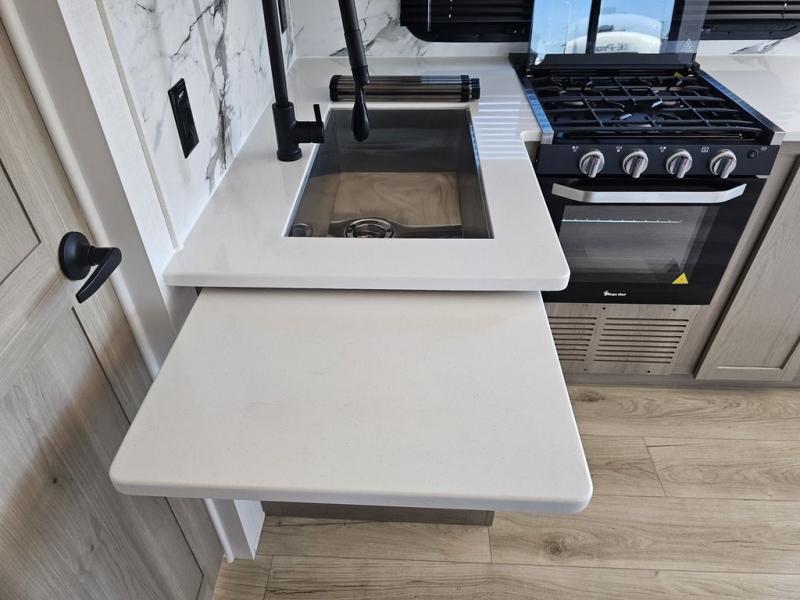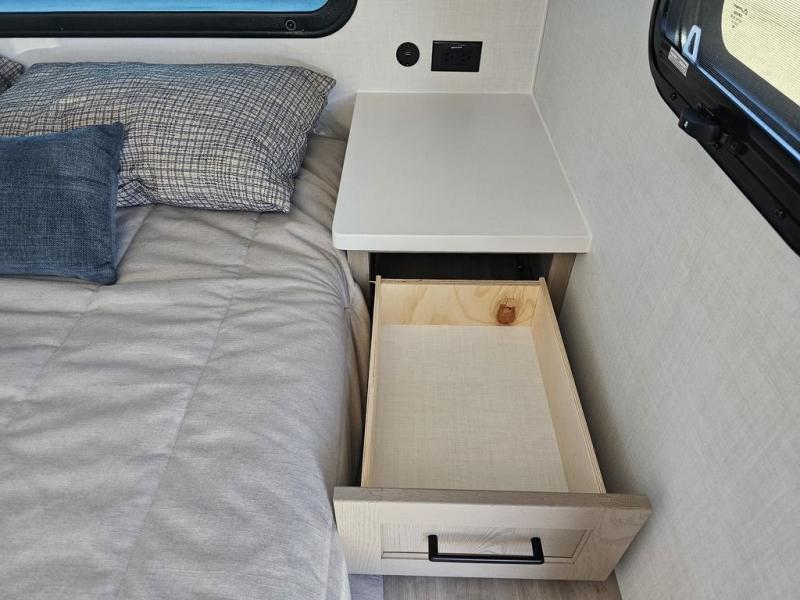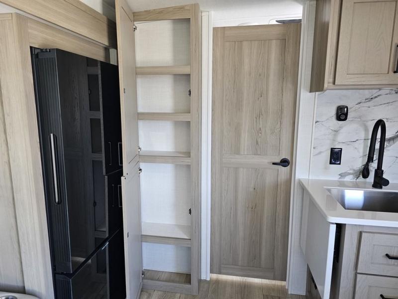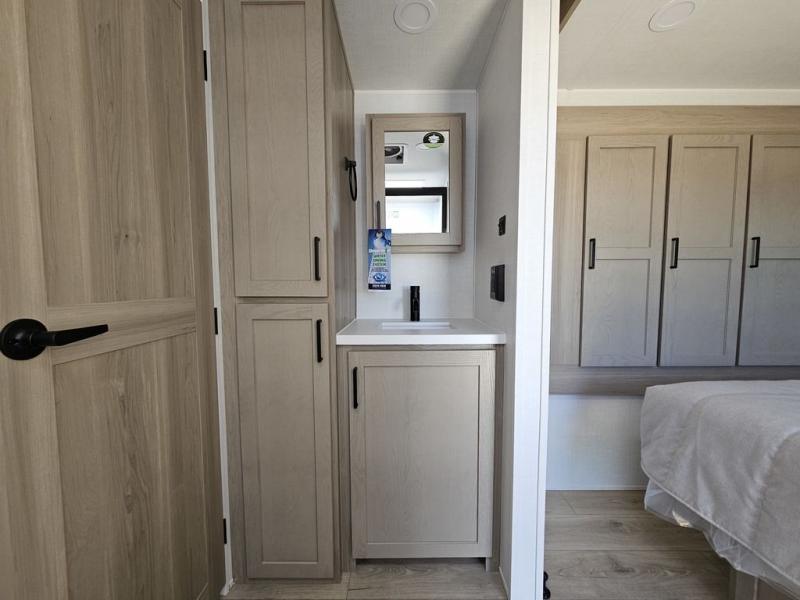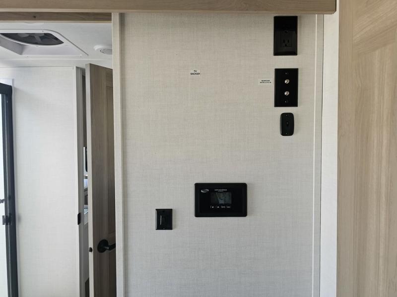 It will be so easy to enjoy time at the campground in this cozy travel trailer. The full kitchen includes a three burner gas oven, a microwave oven, and a 12V refrigerator to cook and store food, and the pantry will let you stock up on snacks. Your crew can get comfortable on the theater seat or around the rear U-shaped dinette, and there is a smart TV here to make it a movie night. The walk-thru bath will let you freshen up each day, and the queen bed in the front bedroom is sure to bring comfort. You will also find one of the dual entry doors here for convenience plus a wardrobe slide out for more storage and floor space. The exterior is just as accommodating with its pass-thru storage, 2" receiver hitch, and 21' power awning!