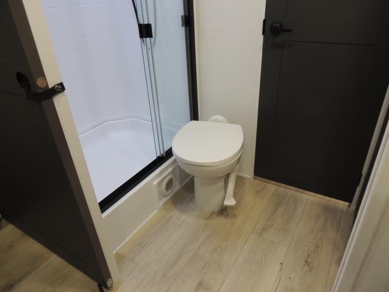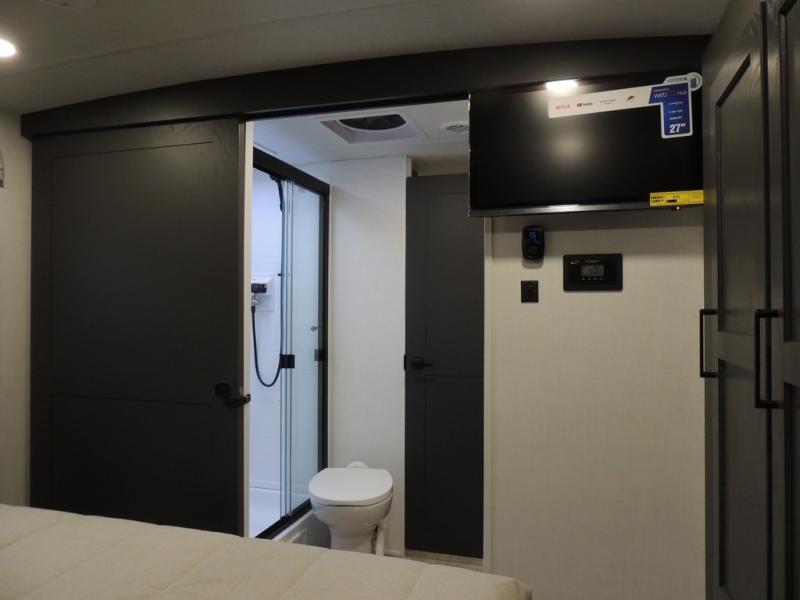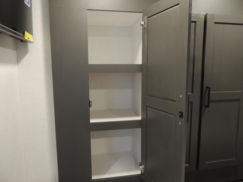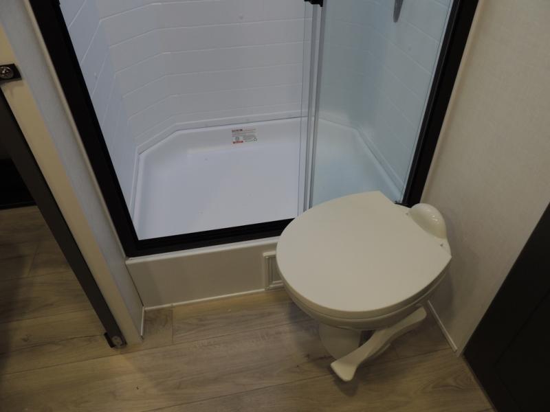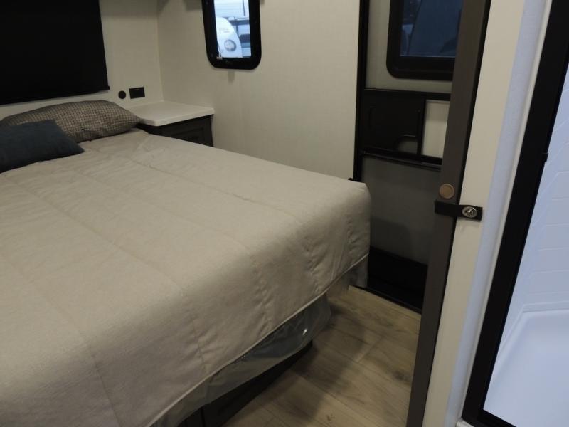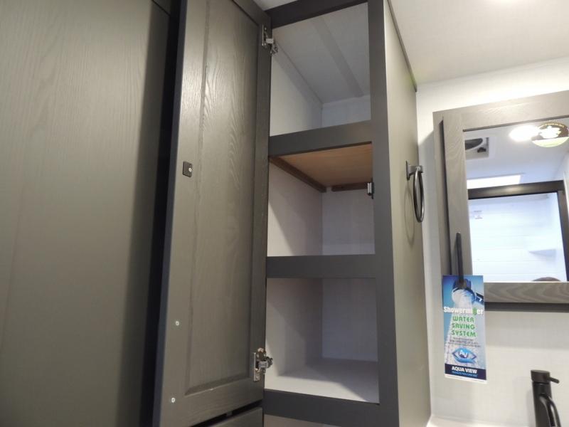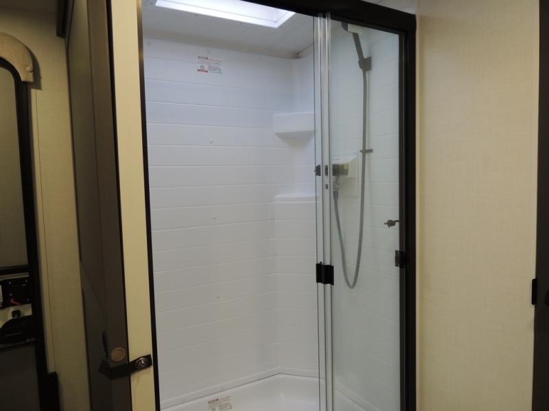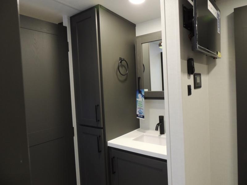 It will be so easy to enjoy time at the campground in this cozy travel trailer. The full kitchen includes a three burner gas oven, a microwave oven, and a 12V refrigerator to cook and store food, and the pantry will let you stock up on snacks. Your crew can get comfortable on the theater seat or around the rear U-shaped dinette, and there is a smart TV here to make it a movie night. The walk-thru bath will let you freshen up each day, and the queen bed in the front bedroom is sure to bring comfort. You will also find one of the dual entry doors here for convenience plus a wardrobe slide out for more storage and floor space. The exterior is just as accommodating with its pass-thru storage, 2" receiver hitch, and 21' power awning!