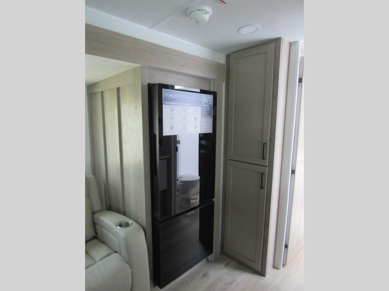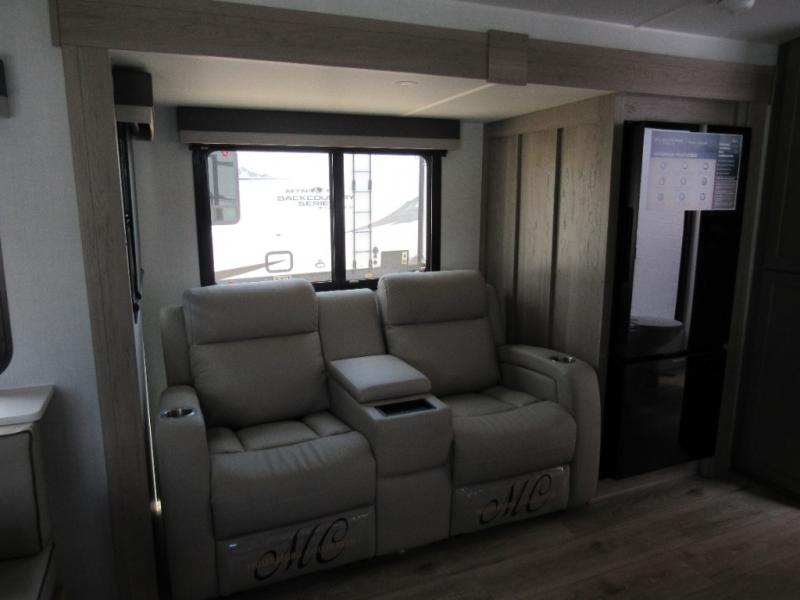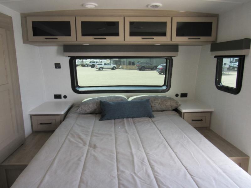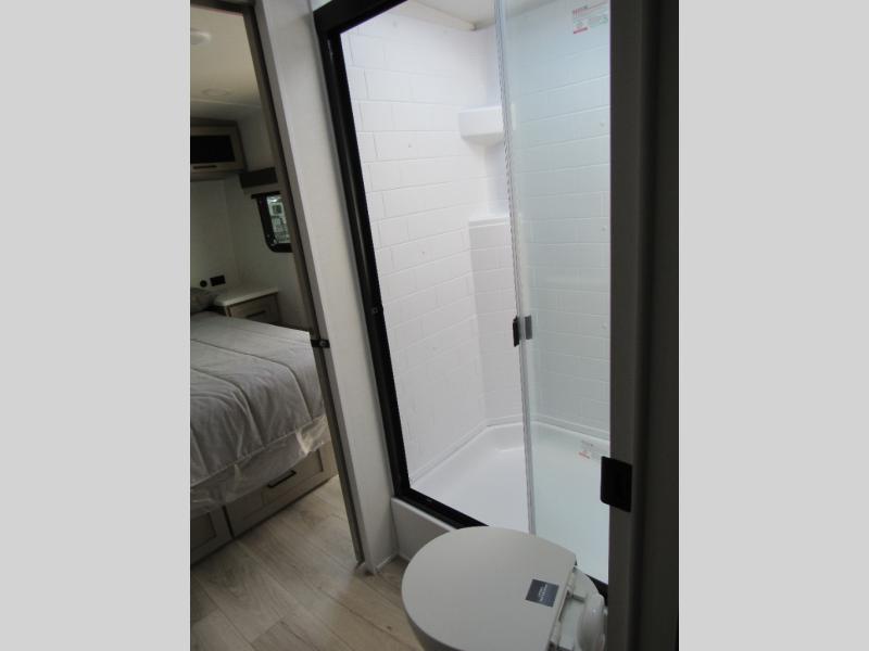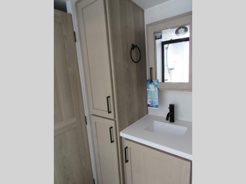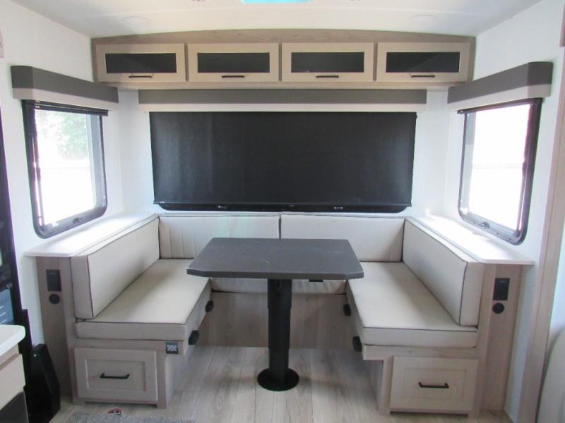 It will be so easy to enjoy time at the campground in this cozy travel trailer. The full kitchen includes a three burner gas oven, a microwave oven, and a 12V refrigerator to cook and store food, and the pantry will let you stock up on snacks. Your crew can get comfortable on the theater seat or around the rear U-shaped dinette, and there is a smart TV here to make it a movie night. The walk-thru bath will let you freshen up each day, and the queen bed in the front bedroom is sure to bring comfort. You will also find one of the dual entry doors here for convenience plus a wardrobe slide out for more storage and floor space. The exterior is just as accommodating with its pass-thru storage, 2" receiver hitch, and 21' power awning!
