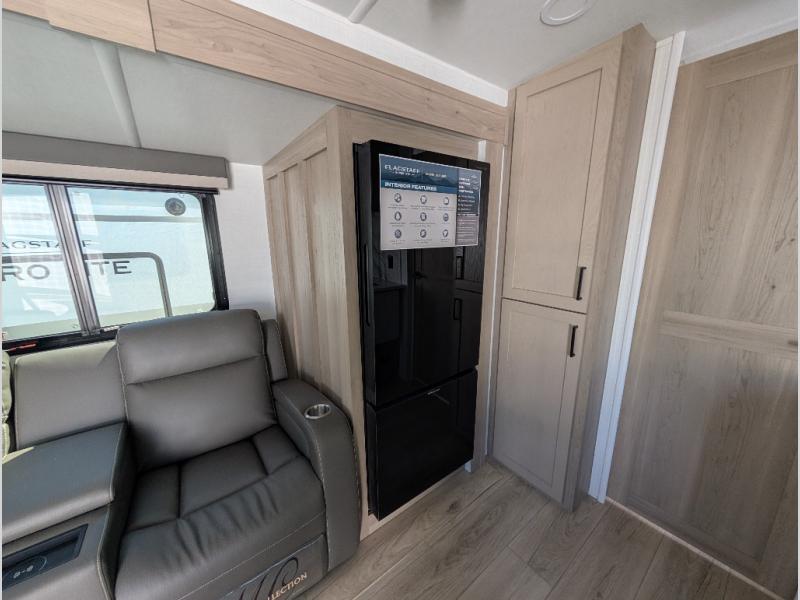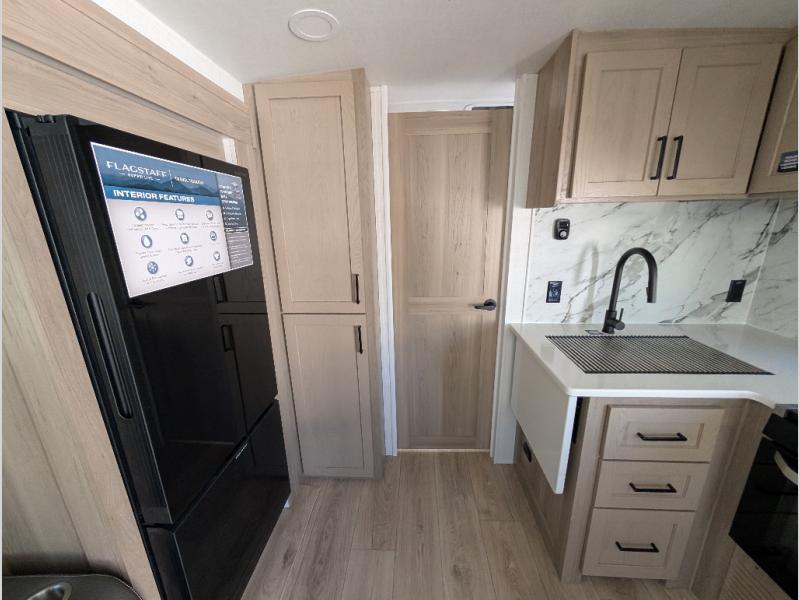 With any Flagstaff Super Lite travel trailer by Forest River, you can enjoy quality features with lightweight towing! The Climate Protection Package includes radiant foil in the front cap, underbelly, and slides, plus there are 12V thermostat-controlled heated tanks for added protection. The complete composite wall construction and 6-sided full-aluminum frame is ultra durable, and the RoadTech tire pressure monitoring adds safety. Each model also includes the Coast to Coast Package that comes with slam latch baggage doors, a high gloss fiberglass cap, Goodyear Endurance tires, plus a 200W solar panel with an optional additional 200W panel for more off grid capabilities. Inside, you'll love the roller shades, solid surface kitchen countertops, a shower miser system, and many more comforts!