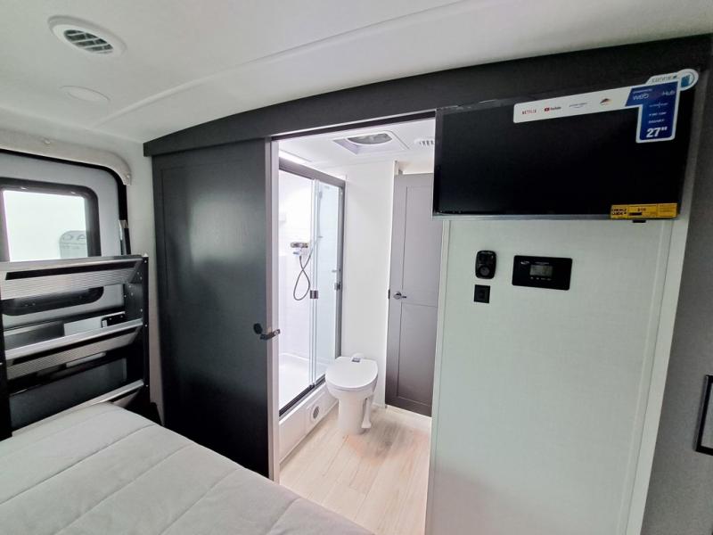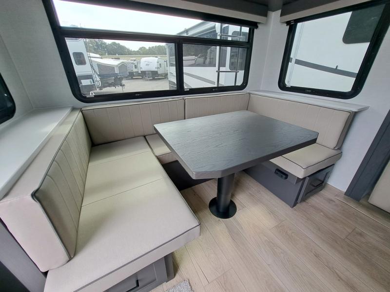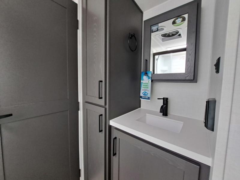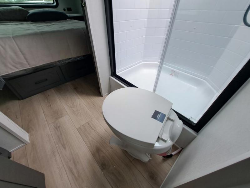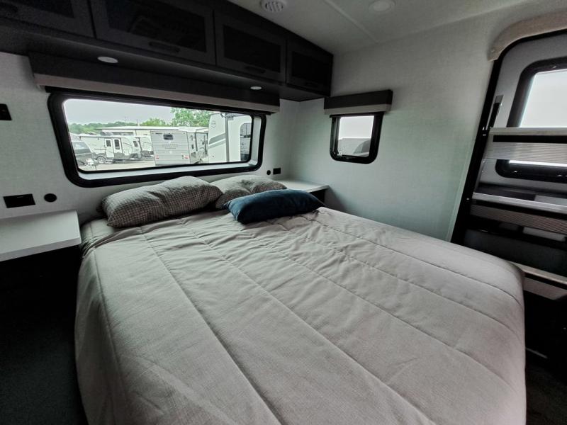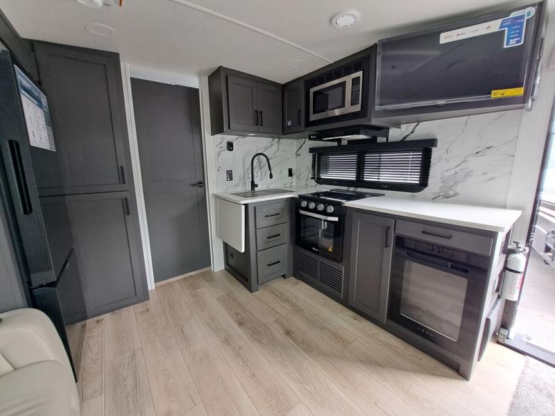 It will be so easy to enjoy time at the campground in this cozy travel trailer. The full kitchen includes a three burner gas oven, a microwave oven, and a 12V refrigerator to cook and store food, and the pantry will let you stock up on snacks. Your crew can get comfortable on the theater seat or around the rear U-shaped dinette, and there is a smart TV here to make it a movie night. The walk-thru bath will let you freshen up each day, and the queen bed in the front bedroom is sure to bring comfort. You will also find one of the dual entry doors here for convenience plus a wardrobe slide out for more storage and floor space. The exterior is just as accommodating with its pass-thru storage, 2" receiver hitch, and 21' power awning!