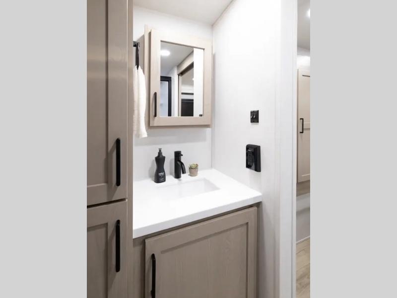 It will be so easy to enjoy time at the campground in this cozy travel trailer. The full kitchen includes a three burner gas oven, a microwave oven, and a 12V refrigerator to cook and store food, and the pantry will let you stock up on snacks. Your crew can get comfortable on the theater seat or around the rear U-shaped dinette, and there is a smart TV here to make it a movie night. The walk-thru bath will let you freshen up each day, and the queen bed in the front bedroom is sure to bring comfort. You will also find one of the dual entry doors here for convenience plus a wardrobe slide out for more storage and floor space. The exterior is just as accommodating with its pass-thru storage, 2" receiver hitch, and 21' power awning!