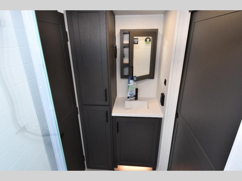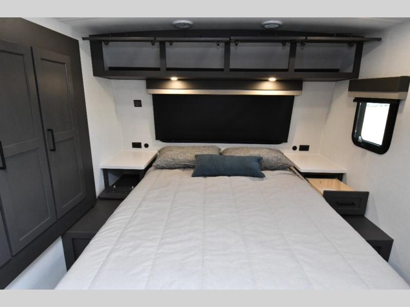 Andover Sable–Mojave Interior • Coast to Coast Package • Platinum Package • 15K BTU 2nd Roof A/C • 2 Slide Toppers • Smart Bedroom TV • Front Sliding Storage Tray • Dexter Tow Assist ABS & Sway Mitigation System • RVIA Seal