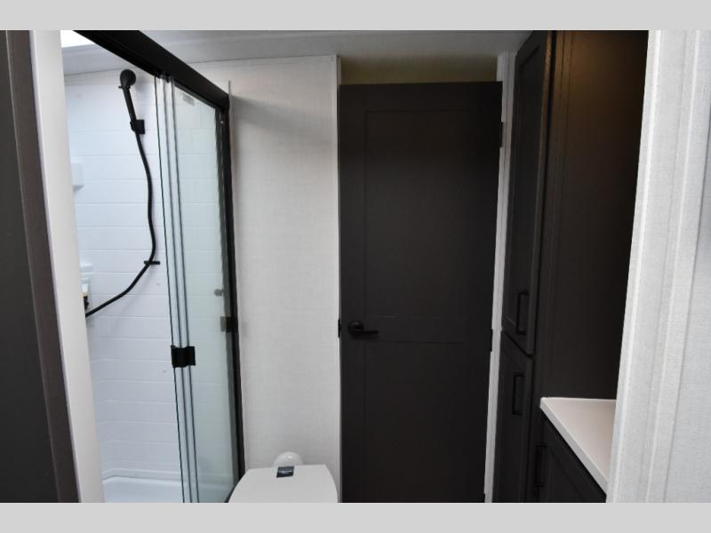 The new 2026 Forest River Flagstaff Super Lite 26SRD is built for campers who want easy towing without giving up everyday comfort. Inside, the Andover Sable–Mojave interior creates a warm, modern feel, while the front private bedroom offers a queen bed, wardrobe slide, and its own exterior entry door. A walk-through bathroom adds convenience for both bedroom and living area access. In the main living space, the theater seating slide and U-shaped dinette provide comfortable seating for relaxing, dining, or hosting guests.