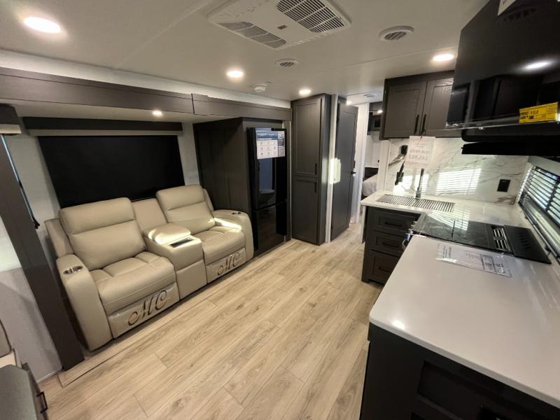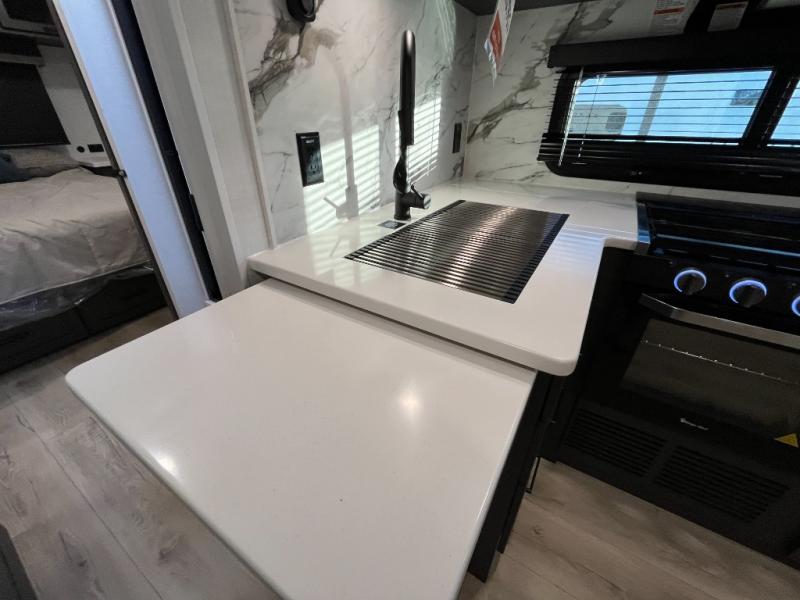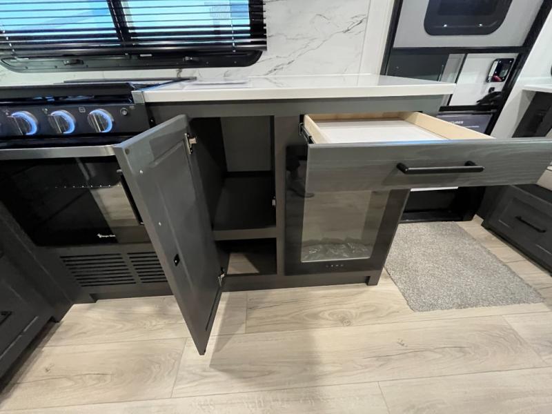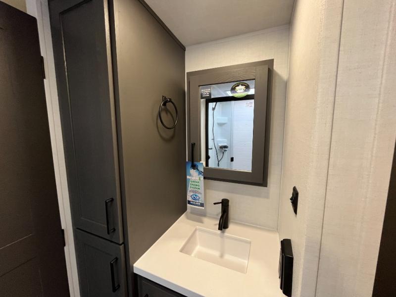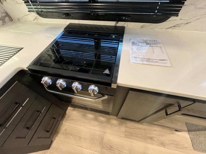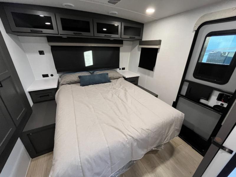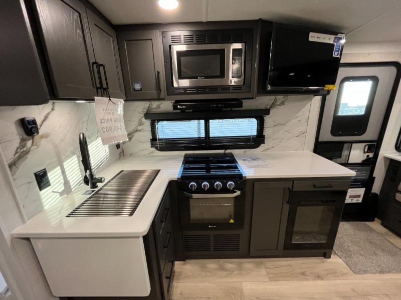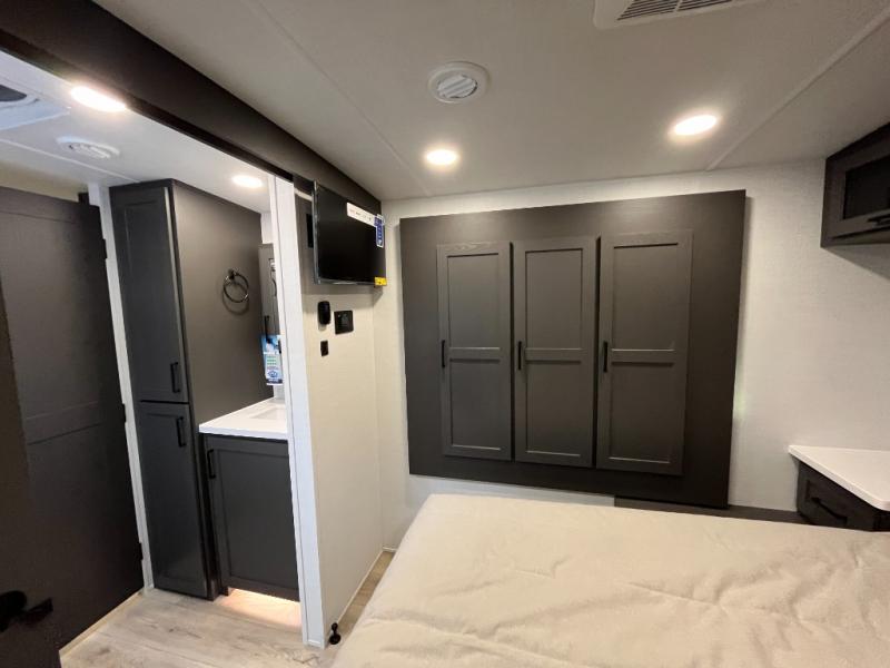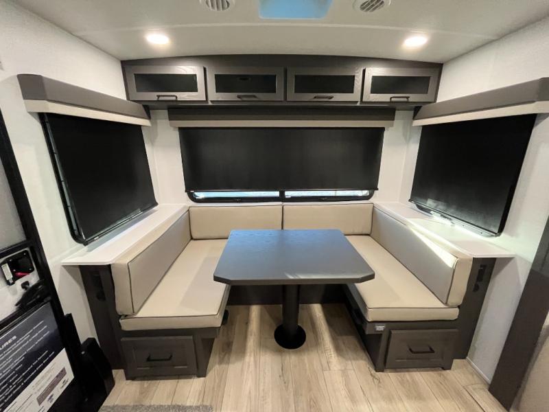 It will be so easy to enjoy time at the campground in this cozy travel trailer. The full kitchen includes a three burner gas oven, a microwave oven, and a 12V refrigerator to cook and store food, and the pantry will let you stock up on snacks. Your crew can get comfortable on the theater seat or around the rear U-shaped dinette, and there is a smart TV here to make it a movie night. The walk-thru bath will let you freshen up each day, and the queen bed in the front bedroom is sure to bring comfort. You will also find one of the dual entry doors here for convenience plus a wardrobe slide out for more storage and floor space. The exterior is just as accommodating with its pass-thru storage, 2" receiver hitch, and 21' power awning!
