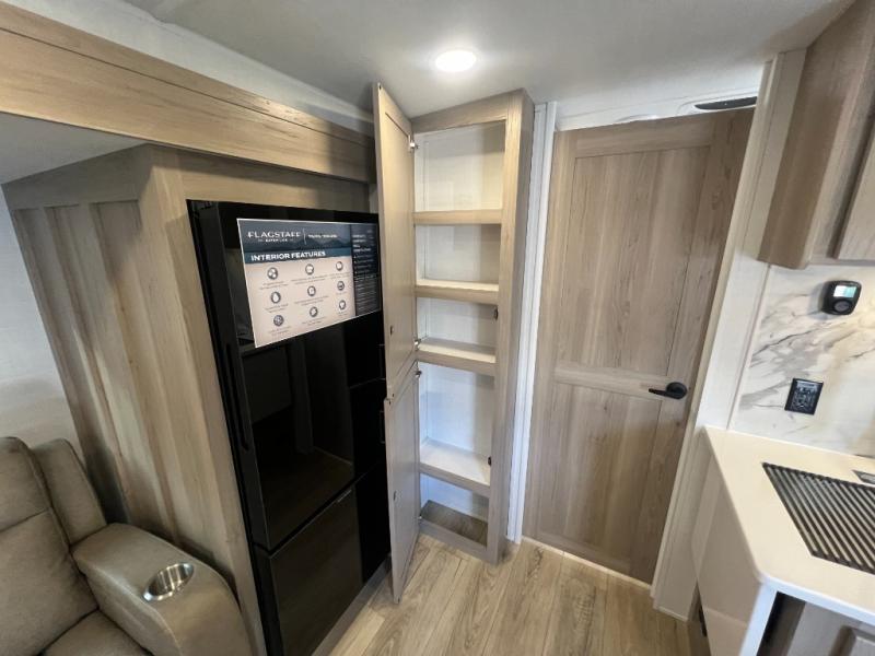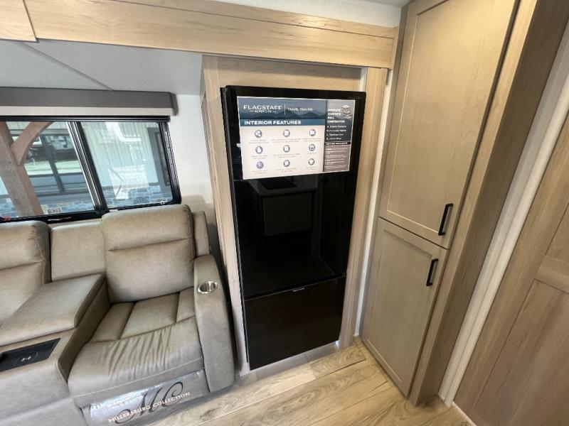With any Flagstaff Super Lite travel trailer by Forest River, you can enjoy quality features with lightweight towing! The Climate Protection Package includes radiant foil in the front cap, underbelly, and slides, plus there are 12V thermostat-controlled heated tanks for added protection. The complete composite wall construction and 6-sided full-aluminum frame is ultra durable, and the RoadTech tire pressure monitoring adds safety. Each model also includes the Coast to Coast Package that comes with slam latch baggage doors, a high gloss fiberglass cap, Goodyear Endurance tires, plus a 200W solar panel with an optional additional 200W panel for more off grid capabilities. Inside, you'll love the roller shades, solid surface kitchen countertops, a shower miser system, and many more comforts!