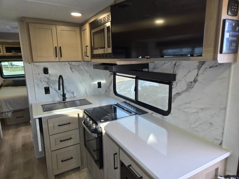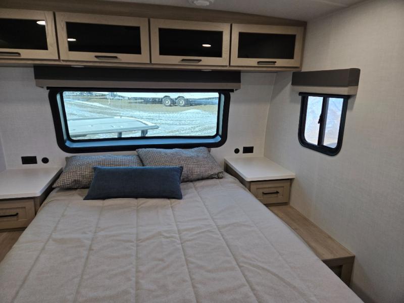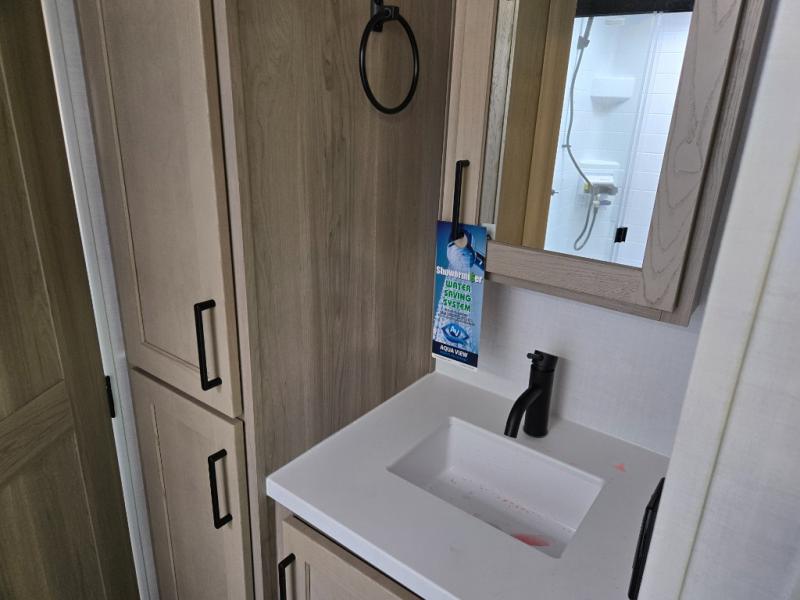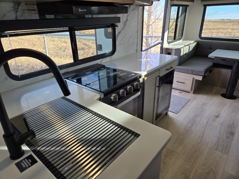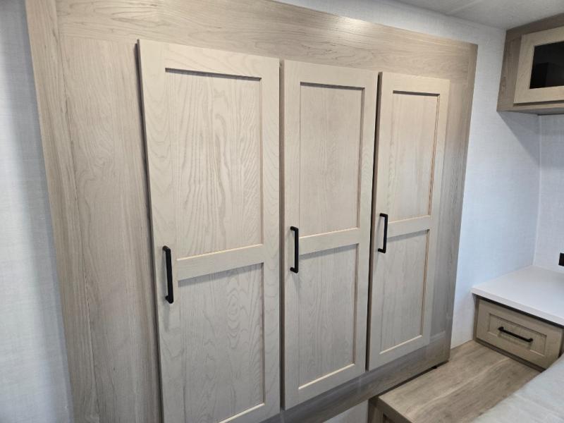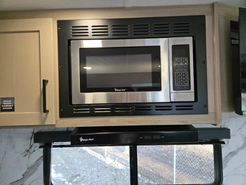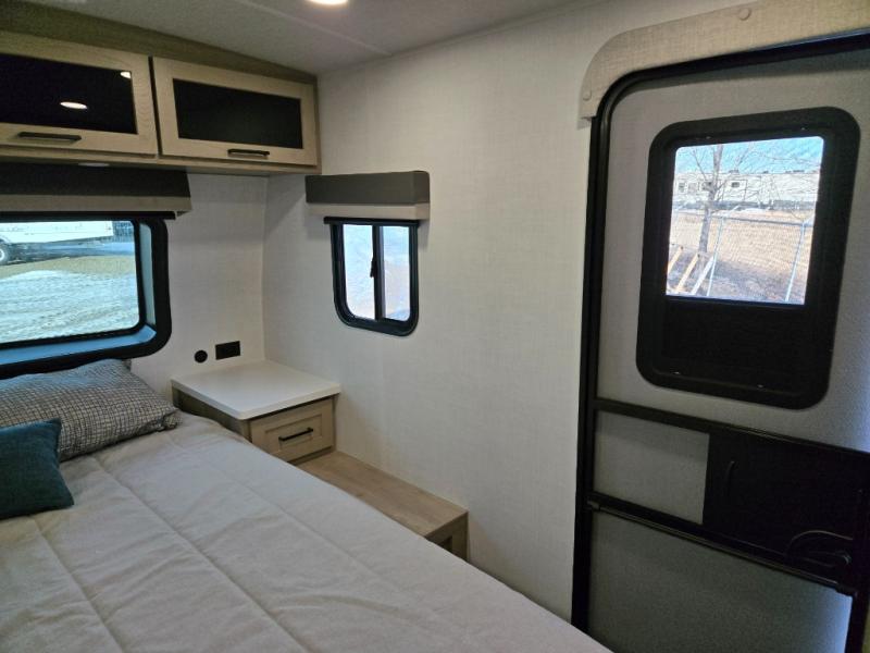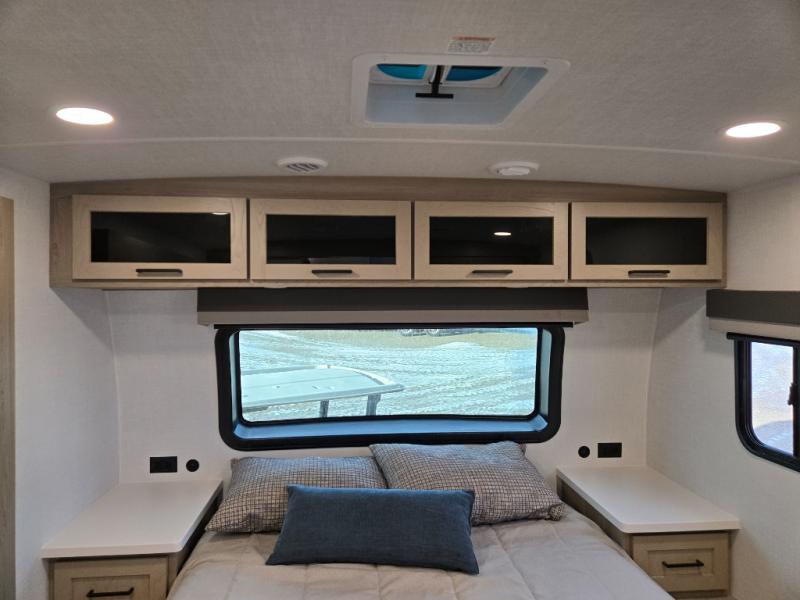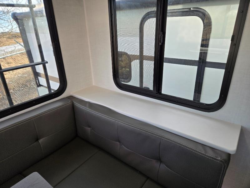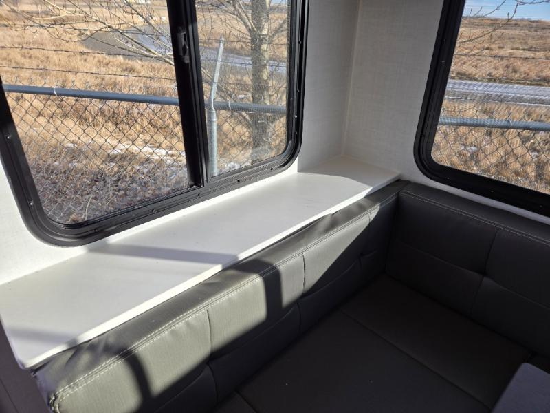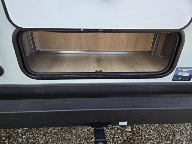 It will be so easy to enjoy time at the campground in this cozy travel trailer. The full kitchen includes a three burner gas oven, a microwave oven, and a 12V refrigerator to cook and store food, and the pantry will let you stock up on snacks. Your crew can get comfortable on the theater seat or around the rear U-shaped dinette, and there is a smart TV here to make it a movie night. The walk-thru bath will let you freshen up each day, and the queen bed in the front bedroom is sure to bring comfort. You will also find one of the dual entry doors here for convenience plus a wardrobe slide out for more storage and floor space. The exterior is just as accommodating with its pass-thru storage, 2" receiver hitch, and 21' power awning!