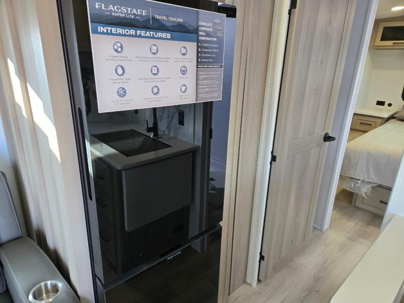 With any Flagstaff Super Lite travel trailer by Forest River, you can enjoy quality features with lightweight towing! The Climate Protection Package includes radiant foil in the front cap, underbelly, and slides, plus there are 12V thermostat-controlled heated tanks for added protection. The complete composite wall construction and 6-sided full-aluminum frame is ultra durable, and the RoadTech tire pressure monitoring adds safety. Each model also includes the Coast to Coast Package that comes with slam latch baggage doors, a high gloss fiberglass cap, Goodyear Endurance tires, plus a 200W solar panel with an optional additional 200W panel for more off grid capabilities. Inside, you'll love the roller shades, solid surface kitchen countertops, a shower miser system, and many more comforts!