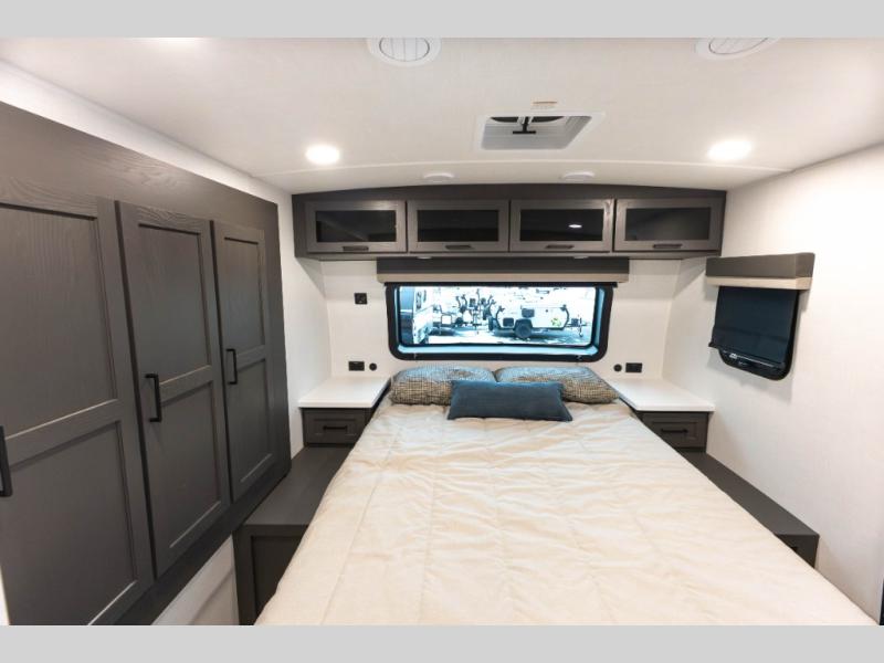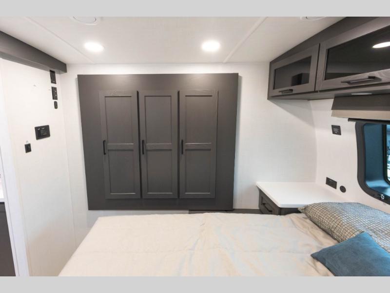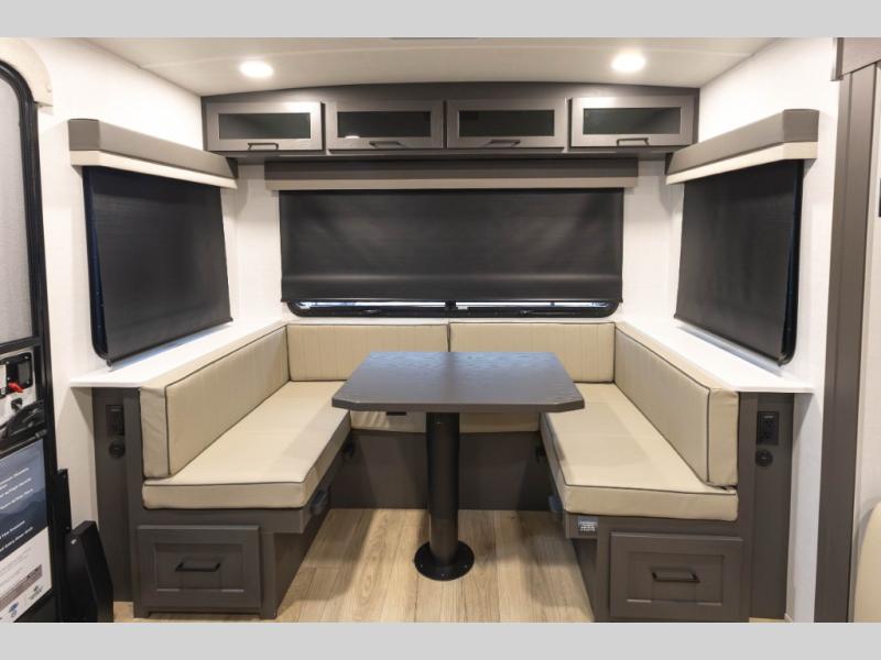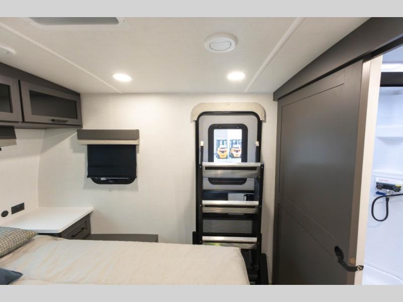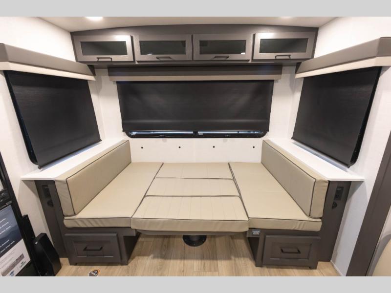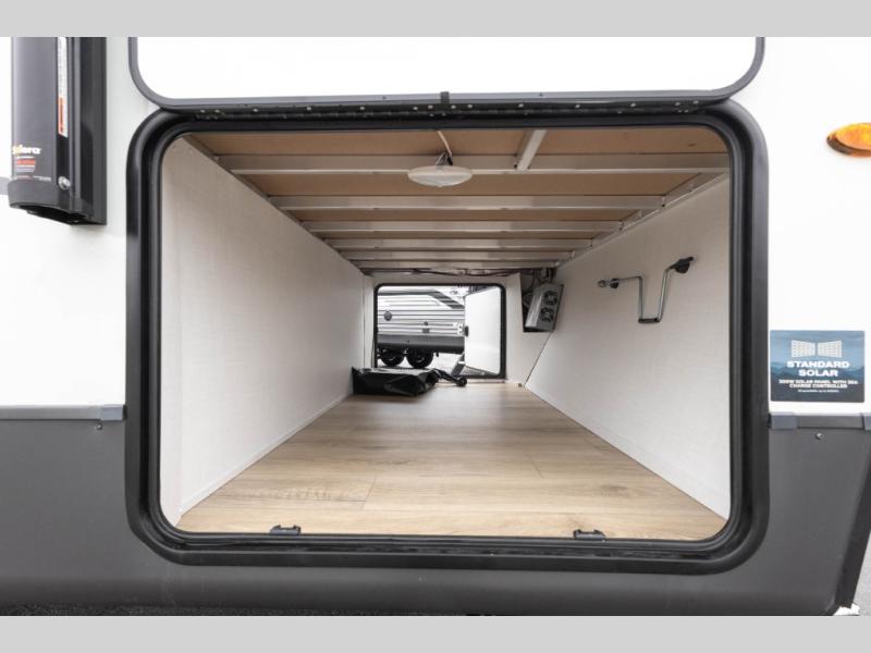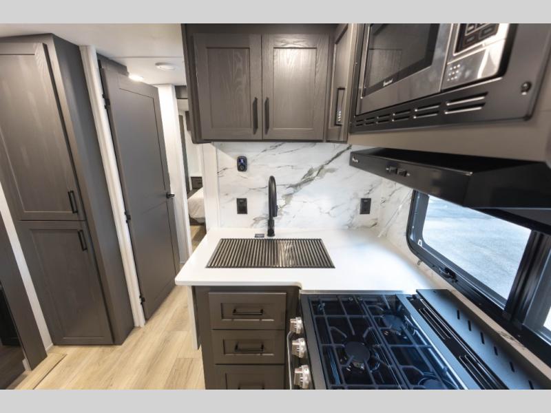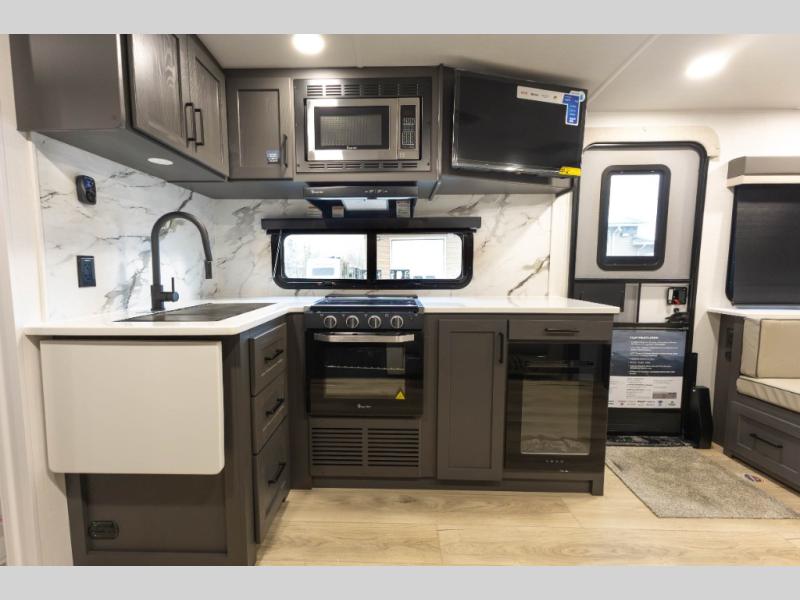 It will be so easy to enjoy time at the campground in this cozy travel trailer. The full kitchen includes a three burner gas oven, a microwave oven, and a 12V refrigerator to cook and store food, and the pantry will let you stock up on snacks. Your crew can get comfortable on the theater seat or around the rear U-shaped dinette, and there is a smart TV here to make it a movie night. The walk-thru bath will let you freshen up each day, and the queen bed in the front bedroom is sure to bring comfort. You will also find one of the dual entry doors here for convenience plus a wardrobe slide out for more storage and floor space. The exterior is just as accommodating with its pass-thru storage, 2" receiver hitch, and 21' power awning!