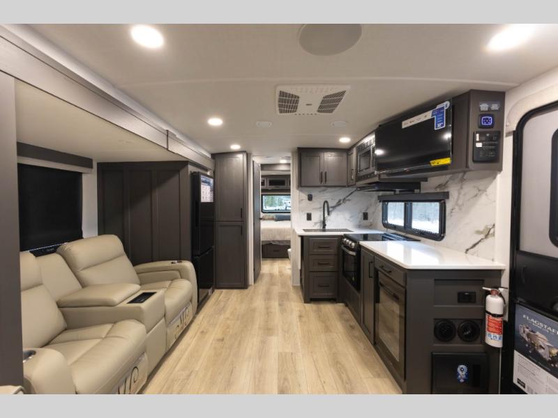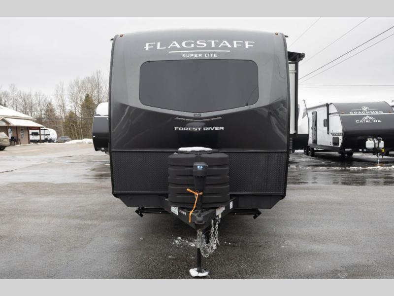With any Flagstaff Super Lite travel trailer by Forest River, you can enjoy quality features with lightweight towing! The Climate Protection Package includes radiant foil in the front cap, underbelly, and slides, plus there are 12V thermostat-controlled heated tanks for added protection. The complete composite wall construction and 6-sided full-aluminum frame is ultra durable, and the RoadTech tire pressure monitoring adds safety. Each model also includes the Coast to Coast Package that comes with slam latch baggage doors, a high gloss fiberglass cap, Goodyear Endurance tires, plus a 200W solar panel with an optional additional 200W panel for more off grid capabilities. Inside, you'll love the roller shades, solid surface kitchen countertops, a shower miser system, and many more comforts!