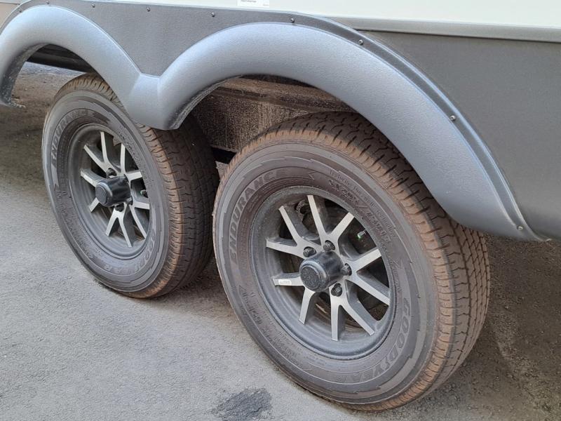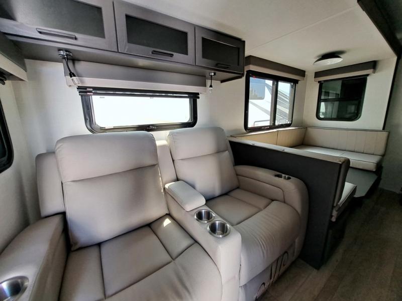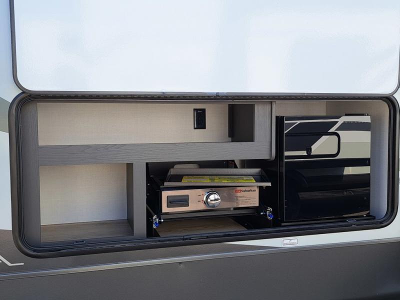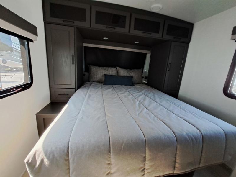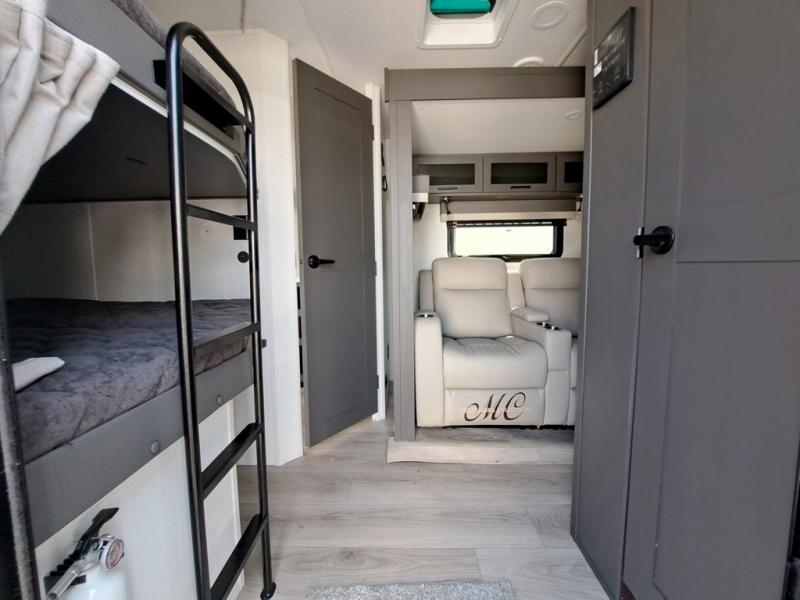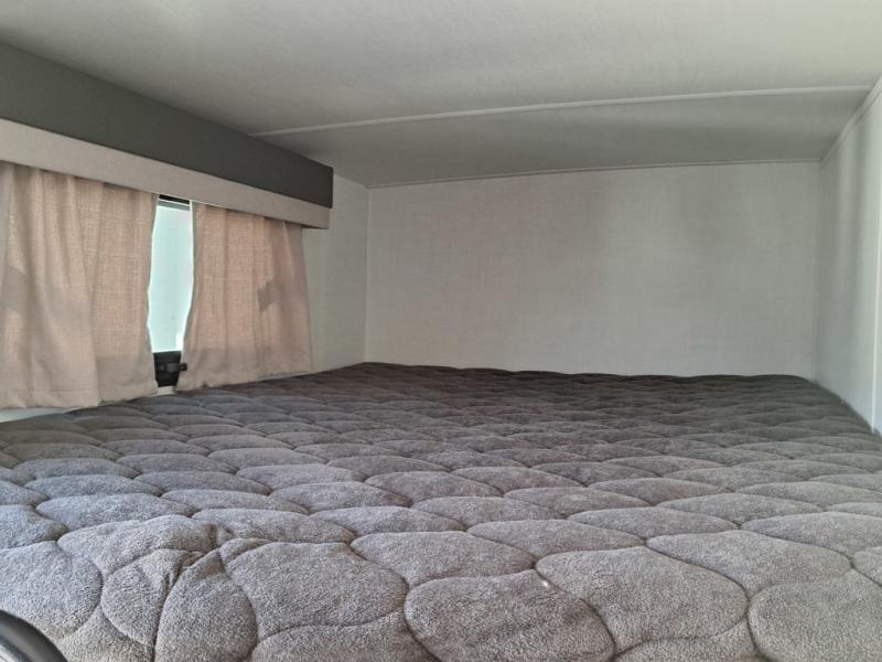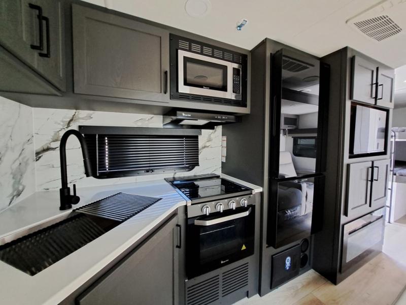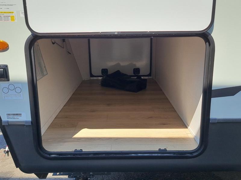 Get ready for a fun camping experience with your family and friends in this trailer that sleeps eight! From the rear double size bunks to the front bedroom's queen bed, and the furniture in the spacious main living area, everyone will find a place to lay their head at night. The cook will have full amenities inside and the choice to make meals on the outside kitchen when feeding everyone. There is abundant storage for your snacks and dry ingredients in the walk-in pantry, your cold items in the 12V refrigerator, and throughout the interior and along the exterior. You can load the larger gear in the front pass-thru storage with an optional steel sliding tray, and there is also an optional front door leading to the bedroom if you want even more convenience!