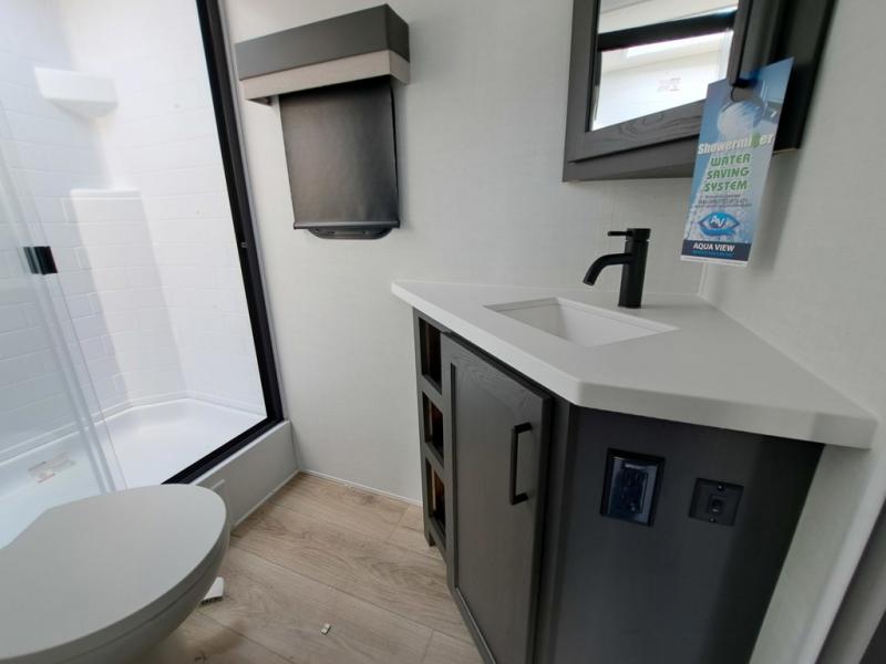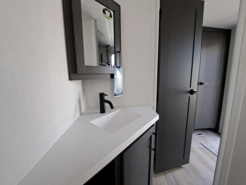 With any Flagstaff Super Lite travel trailer by Forest River the towing features include the TST tire pressure monitor system with a monitor providing safety on the road, Easy Lube axles and Nev-R adjust brakes, a power tongue jack for easy setup, and rear observation camera prep. Each is built with 6 sided aluminum framed side walls, end wall, front, floor and a roof, a plywood tongue and groove subfloor, electronically controlled heated holding tanks and an enclosed underbelly allowing you to travel during any season. The interior includes designer kitchen backsplash, solid surface kitchen countertops, Sedonwood cabinetry, and solid wood cabinet doors and drawers to make you feel right at home.