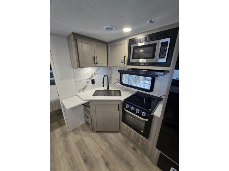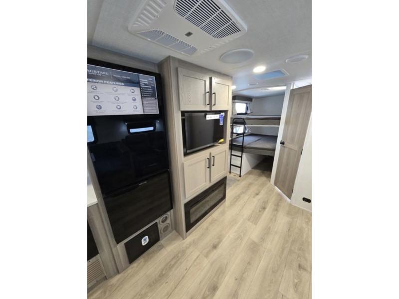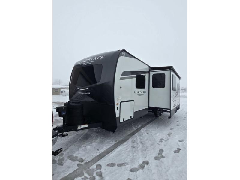With any Flagstaff Super Lite travel trailer by Forest River, you can enjoy quality features with lightweight towing! The Climate Protection Package includes radiant foil in the front cap, underbelly, and slides, plus there are 12V thermostat-controlled heated tanks for added protection. The complete composite wall construction and 6-sided full-aluminum frame is ultra durable, and the RoadTech tire pressure monitoring adds safety. Each model also includes the Coast to Coast Package that comes with slam latch baggage doors, a high gloss fiberglass cap, Goodyear Endurance tires, plus a 200W solar panel with an optional additional 200W panel for more off grid capabilities. Inside, you'll love the roller shades, solid surface kitchen countertops, a shower miser system, and many more comforts!