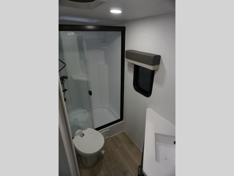 With any Flagstaff Super Lite travel trailer by Forest River, you can enjoy quality features with lightweight towing! The Climate Protection Package includes radiant foil in the front cap, underbelly, and slides, plus there are 12V thermostat-controlled heated tanks for added protection. The complete composite wall construction and 6-sided full-aluminum frame is ultra durable, and the RoadTech tire pressure monitoring adds safety. Each model also includes the Coast to Coast Package that comes with slam latch baggage doors, a high gloss fiberglass cap, Goodyear Endurance tires, plus a 200W solar panel with an optional additional 200W panel for more off grid capabilities. Inside, you'll love the roller shades, solid surface kitchen countertops, a shower miser system, and many more comforts!
