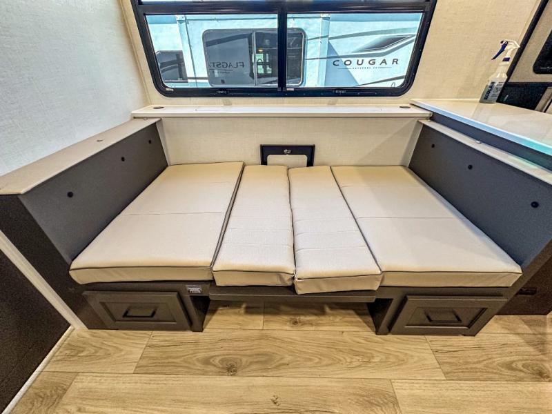 With any Flagstaff Super Lite travel trailer by Forest River, you can enjoy quality features with lightweight towing! The Climate Protection Package includes radiant foil in the front cap, underbelly, and slides, plus there are 12V thermostat-controlled heated tanks for added protection. The complete composite wall construction and 6-sided full-aluminum frame is ultra durable, and the RoadTech tire pressure monitoring adds safety. Each model also includes the Coast to Coast Package that comes with slam latch baggage doors, a high gloss fiberglass cap, Goodyear Endurance tires, plus a 200W solar panel with an optional additional 200W panel for more off grid capabilities. Inside, you'll love the roller shades, solid surface kitchen countertops, a shower miser system, and many more comforts!