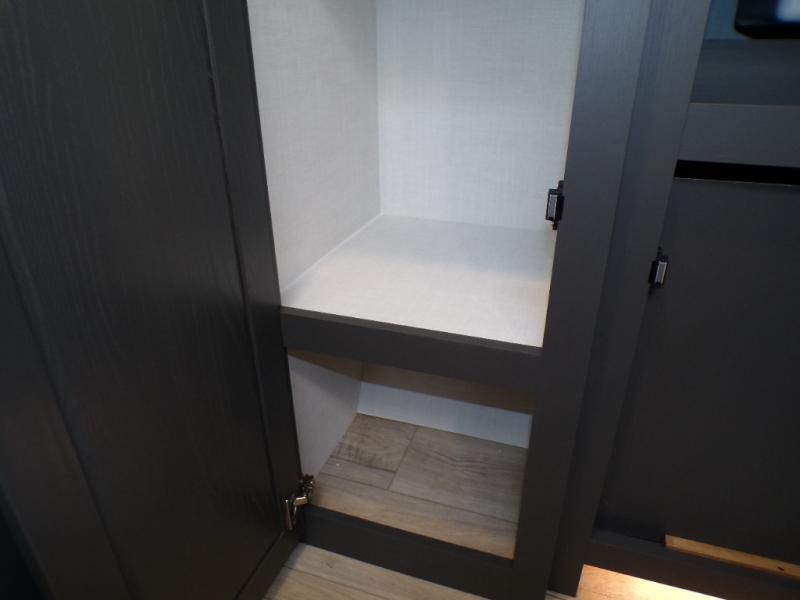 Get ready for a fun camping experience with your family and friends in this trailer that sleeps five to six! There is a rear bunkhouse suite with 43" x 74" bunks, a desk, and a half bath for added convenience. You will also find a front master bedroom with a queen bed, easy access to the walk-thru bath, and one of the dual entry doors. There is abundant storage for your snacks and dry ingredients in the pantry/wardrobe, your cold items in the 12V refrigerator, and throughout the interior and along the exterior. You can load the larger gear in the front pass-thru with an optional steel sliding tray, and other outdoor items in the rear or side storage compartments.