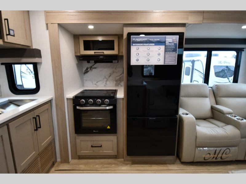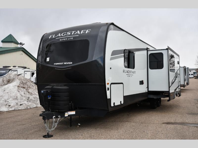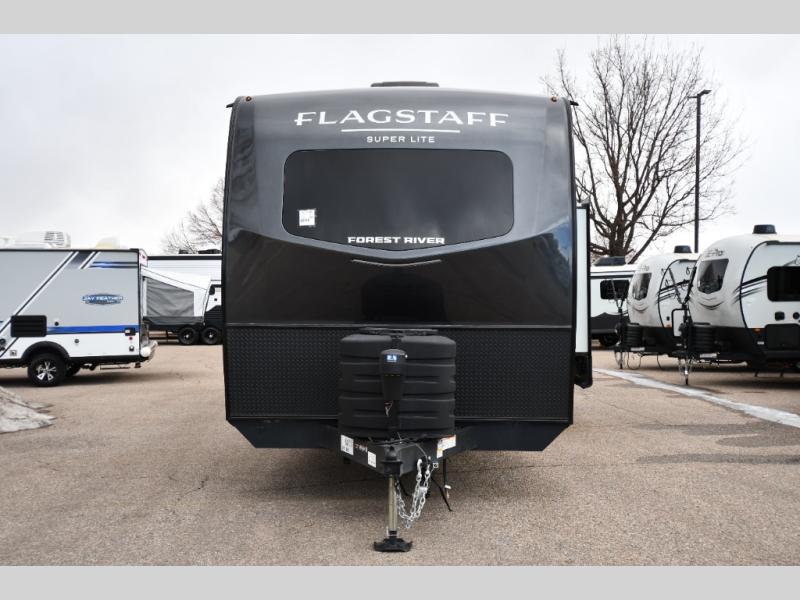 With any Flagstaff Super Lite travel trailer by Forest River, you can enjoy quality features with lightweight towing! The Climate Protection Package includes radiant foil in the front cap, underbelly, and slides, plus there are 12V thermostat-controlled heated tanks for added protection. The complete composite wall construction and 6-sided full-aluminum frame is ultra durable, and the RoadTech tire pressure monitoring adds safety. Each model also includes the Coast to Coast Package that comes with slam latch baggage doors, a high gloss fiberglass cap, Goodyear Endurance tires, plus a 200W solar panel with an optional additional 200W panel for more off grid capabilities. Inside, you'll love the roller shades, solid surface kitchen countertops, a shower miser system, and many more comforts!