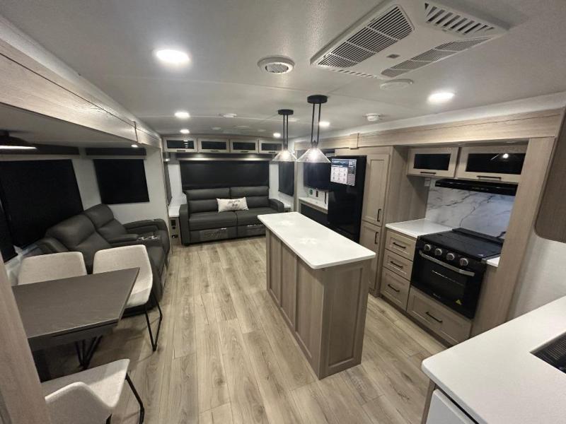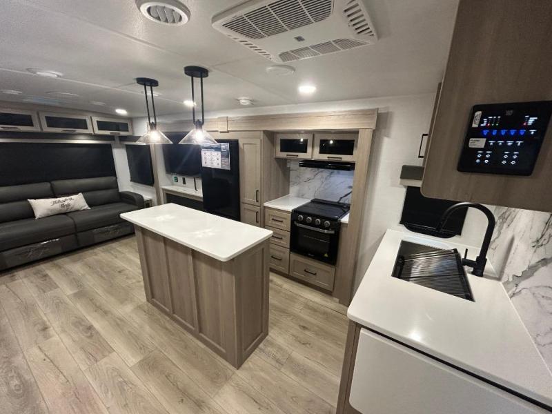 BRAND NEW FLOOR PLAN - KITCHEN ISLAND - FREE STANDING TABLE & CHAIRS - CALL SCENIC RV DELLS @ 608-356-2429