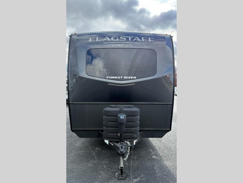 With any Flagstaff Super Lite travel trailer by Forest River, you can enjoy quality features with lightweight towing! The Climate Protection Package includes radiant foil in the front cap, underbelly, and slides, plus there are 12V thermostat-controlled heated tanks for added protection. The complete composite wall construction and 6-sided full-aluminum frame is ultra durable, and the RoadTech tire pressure monitoring adds safety. Each model also includes the Coast to Coast Package that comes with slam latch baggage doors, a high gloss fiberglass cap, Goodyear Endurance tires, plus a 200W solar panel with an optional additional 200W panel for more off grid capabilities. Inside, you'll love the roller shades, solid surface kitchen countertops, a shower miser system, and many more comforts!