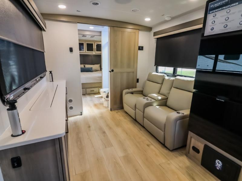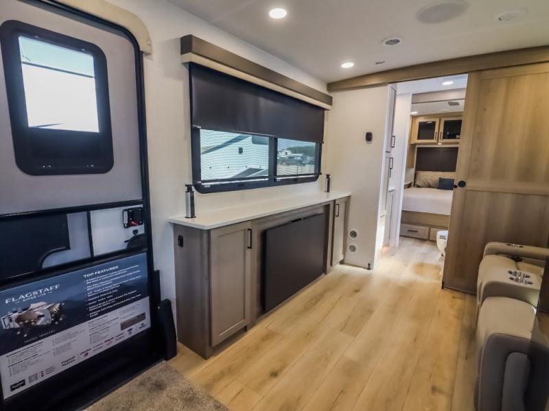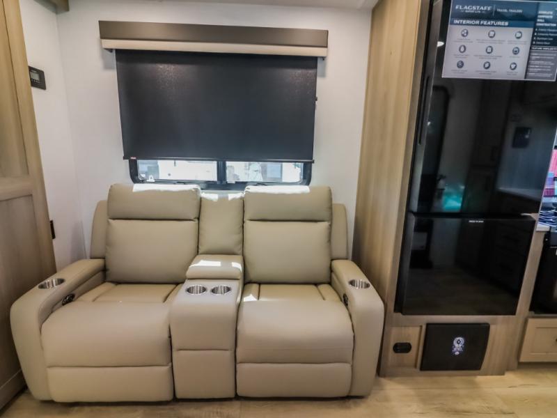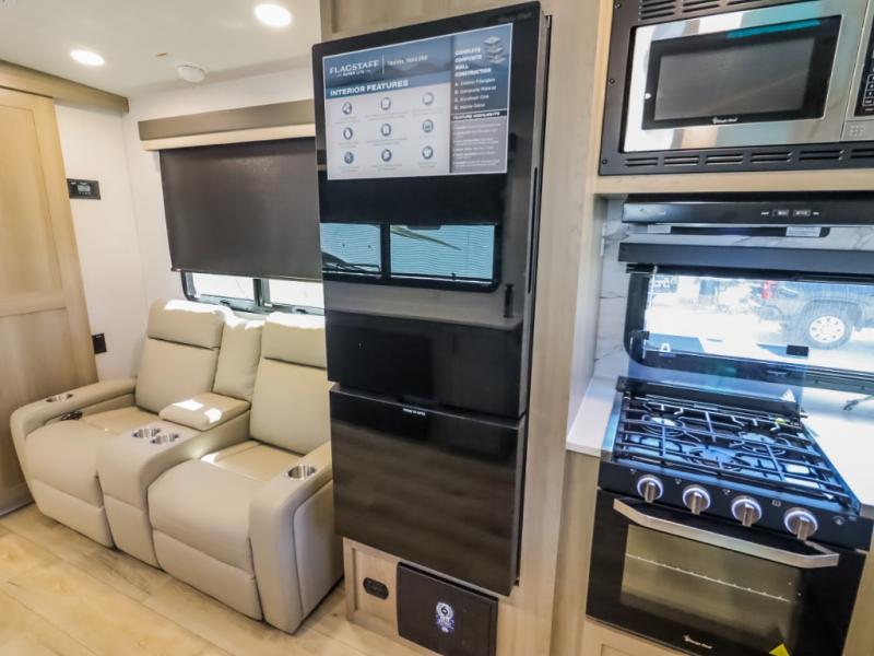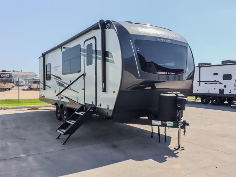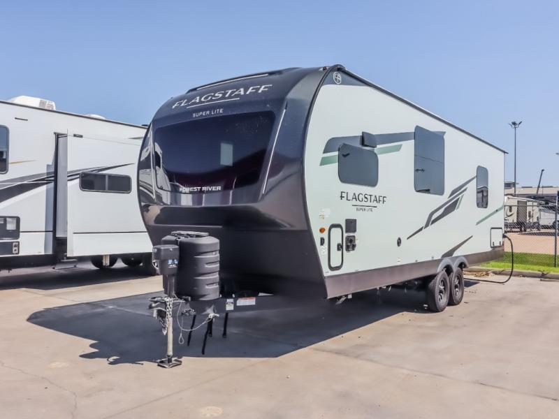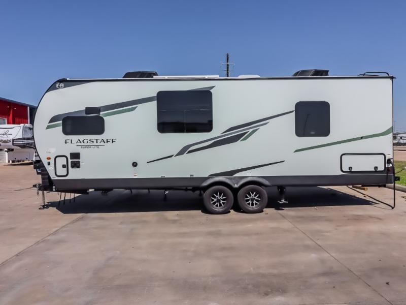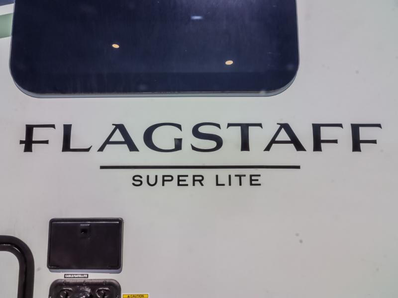 With any Flagstaff Super Lite travel trailer by Forest River, you can enjoy quality features with lightweight towing! The Climate Protection Package includes radiant foil in the front cap, underbelly, and slides, plus there are 12V thermostat-controlled heated tanks for added protection. The complete composite wall construction and 6-sided full-aluminum frame is ultra durable, and the RoadTech tire pressure monitoring adds safety. Each model also includes the Coast to Coast Package that comes with slam latch baggage doors, a high gloss fiberglass cap, Goodyear Endurance tires, plus a 200W solar panel with an optional additional 200W panel for more off grid capabilities. Inside, you'll love the roller shades, solid surface kitchen countertops, a shower miser system, and many more comforts!