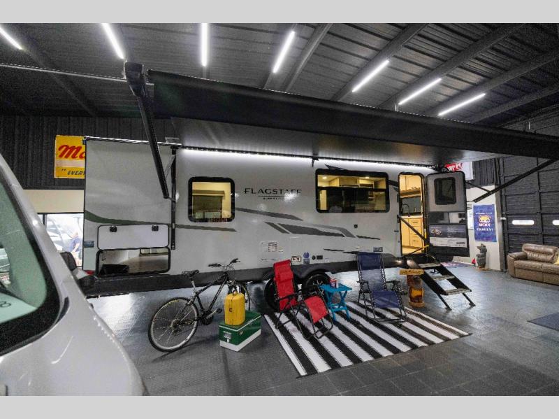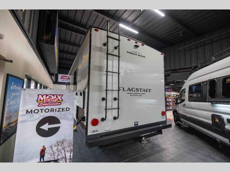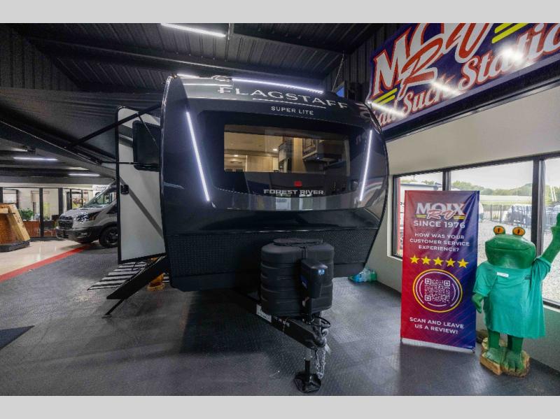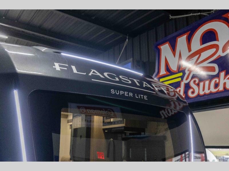 With any Flagstaff Super Lite travel trailer by Forest River, you can enjoy quality features with lightweight towing! The Climate Protection Package includes radiant foil in the front cap, underbelly, and slides, plus there are 12V thermostat-controlled heated tanks for added protection. The complete composite wall construction and 6-sided full-aluminum frame is ultra durable, and the RoadTech tire pressure monitoring adds safety. Each model also includes the Coast to Coast Package that comes with slam latch baggage doors, a high gloss fiberglass cap, Goodyear Endurance tires, plus a 200W solar panel with an optional additional 200W panel for more off grid capabilities. Inside, you'll love the roller shades, solid surface kitchen countertops, a shower miser system, and many more comforts!